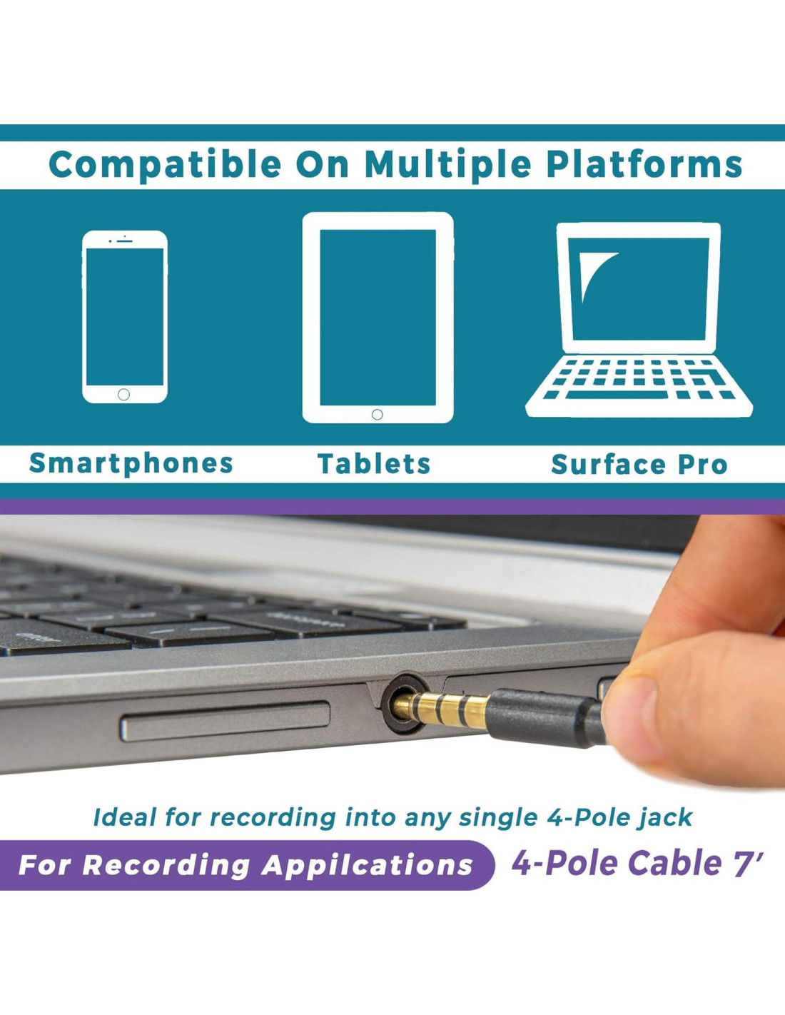 - NOTA: Solo compatible con conectores de 4 POLOS TRRS de 3.5 mm (1/8) en computadoras, tabletas, Android, iPhone y otros smartphones.