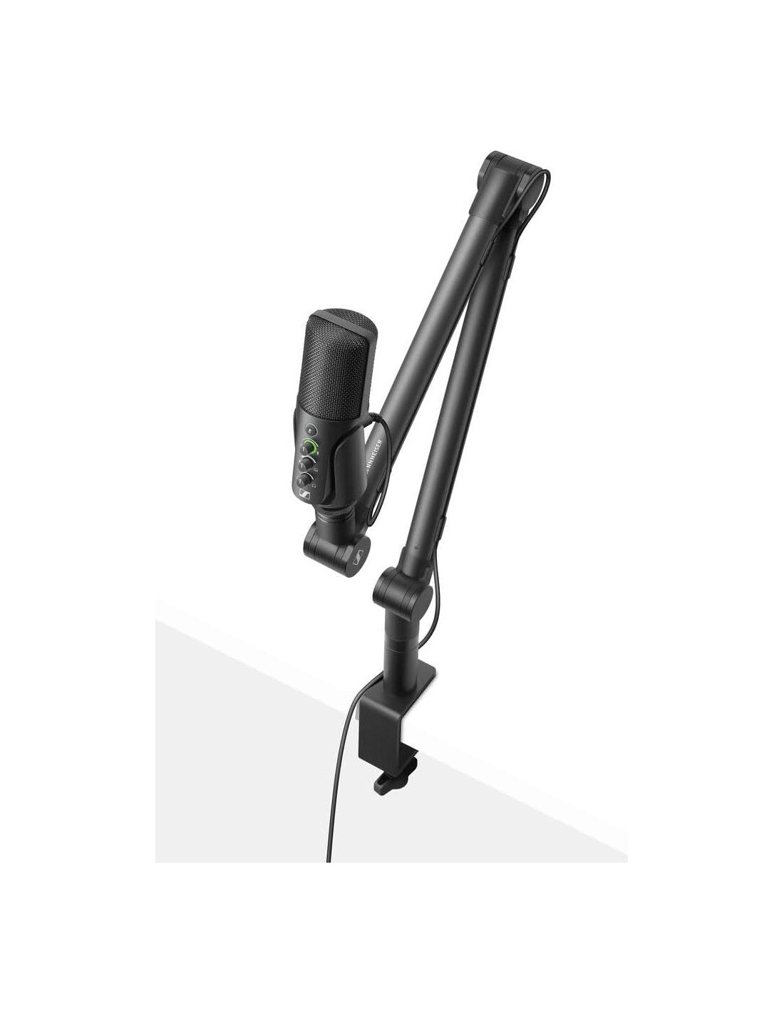 - Características del conjunto de micrófono de condensador USB Sennheiser Profile para streaming con brazo articulado: micrófono USB con accesorios para streaming, patrón de captación cardioide, función de inclinación ajustable, articulación de bloqueo, botón de silencio con anillo LED, control de ganancia con anillo LED, control de mezcla a bordo, salida para auriculares de 3.5mm con control de nivel, robusta carcasa de metal, brazo articulado de 3 puntos con bloqueo, guías de cable, incluye bolsa y cable USB-C (3m)