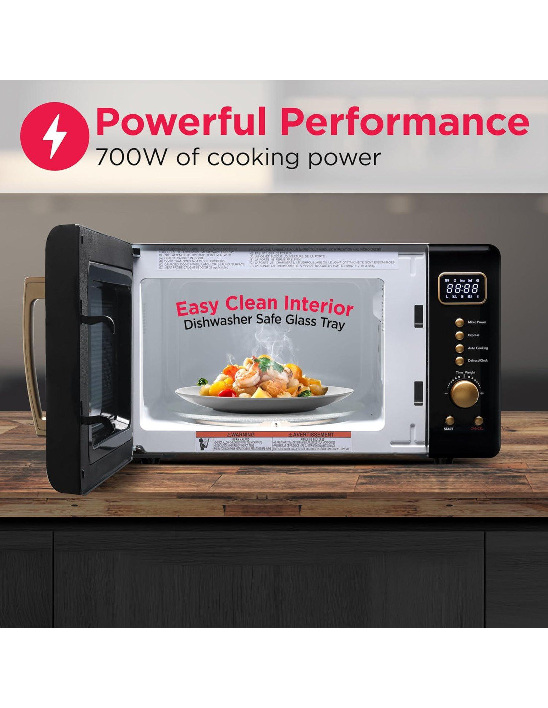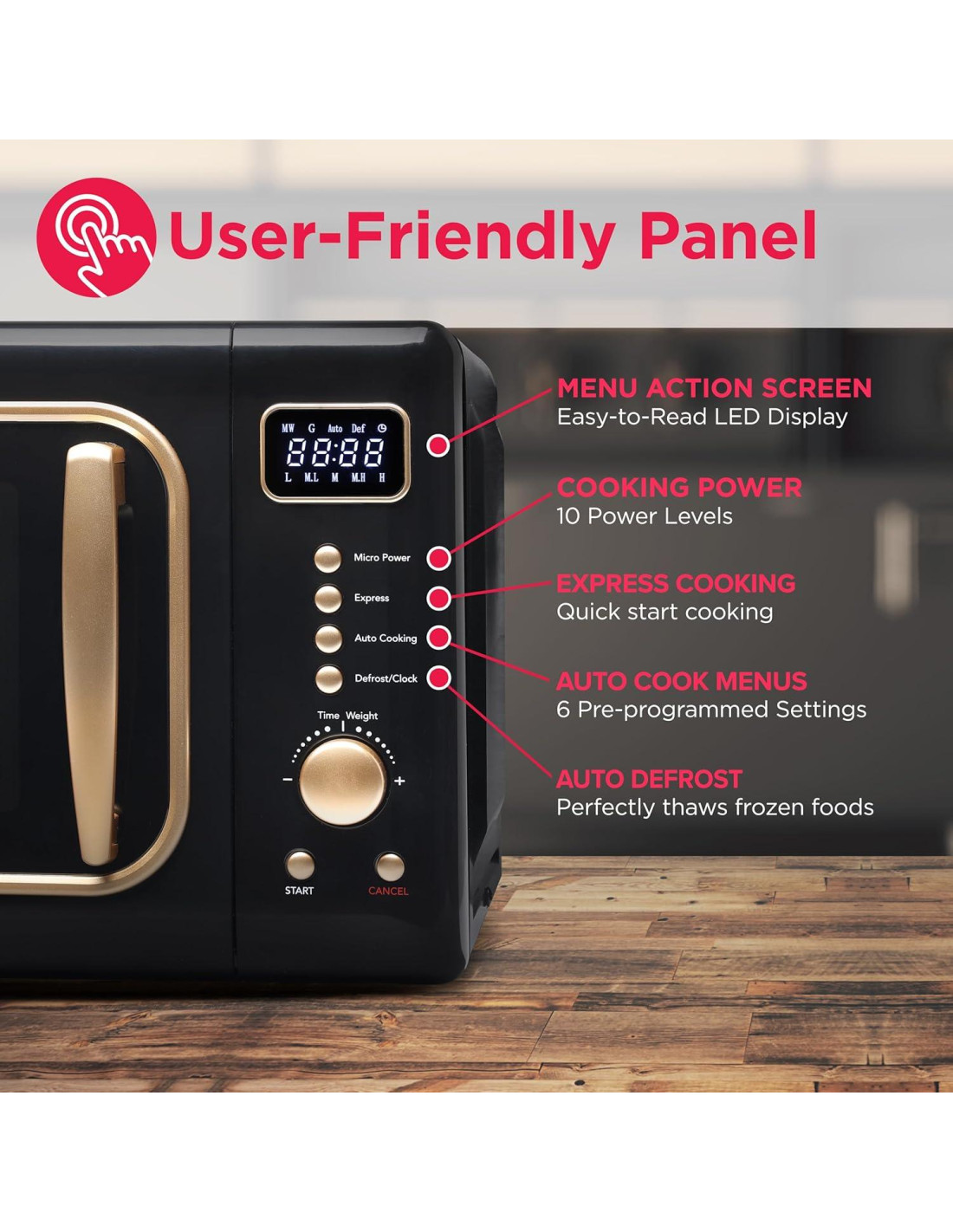- Microondas de 0.7 pies cúbicos, Diseño Retro, 900 Watts, Negro