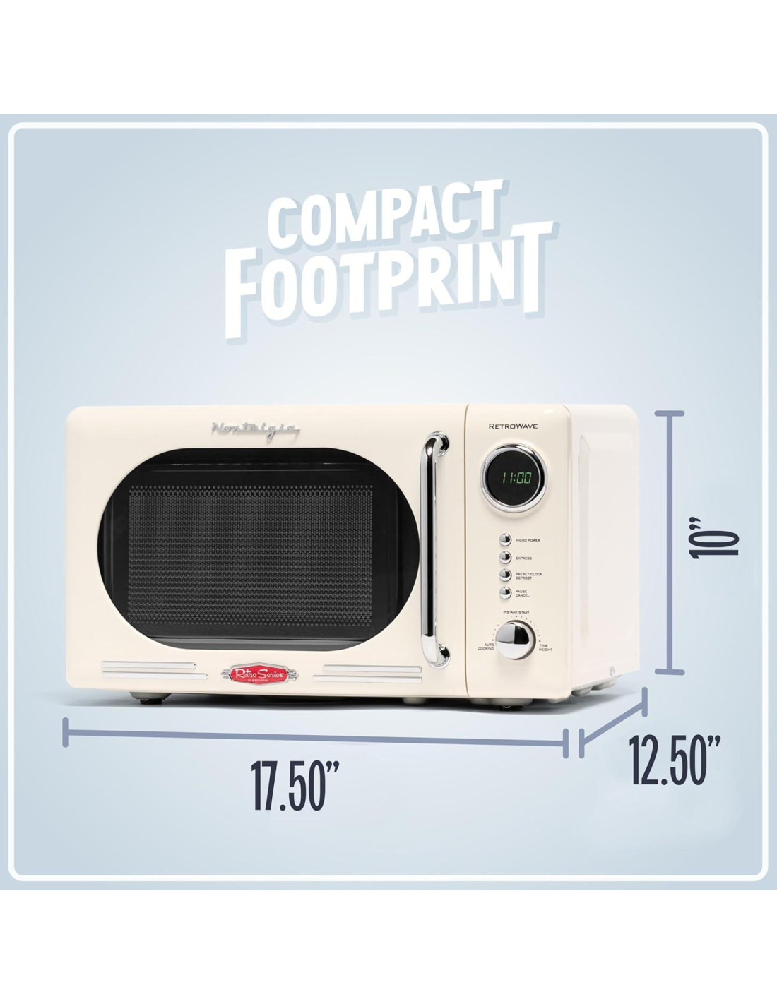 Con un hermoso y elegante diseño retro, este microondas seguramente destacará en cualquier cocina. Cuenta con 12 configuraciones de cocción preprogramadas y una brillante pantalla LED, lo que hace que su uso sea simple. Cinco niveles de potencia y 700 vatios de potencia son perfectos para recalentar sobras o cocinar alimentos.