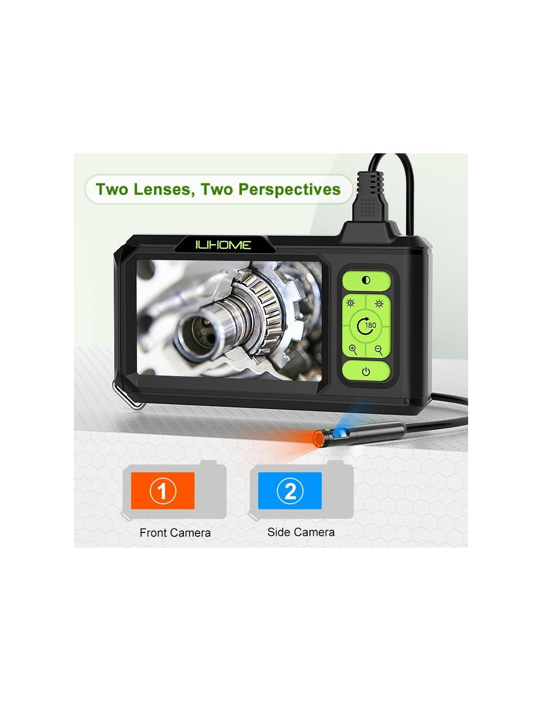 - Pantalla de Protección Ocular IPS de 4.3" Profesional Experimente una visualización cristalina en la gran pantalla IPS de 4.3 pulgadas con alta resolución. Con un ángulo de visión ultra amplio de 178 y restauración de escena verdadera 1:1, esta cámara de inspección ofrece colores precisos sin desviación. El modo de protección ocular filtra la luz azul para reducir la fatiga. La única rotación de pantalla de 180 es perfecta para navegar en lugares difíciles como compartimentos de motores y tuberías con su borescopio.
