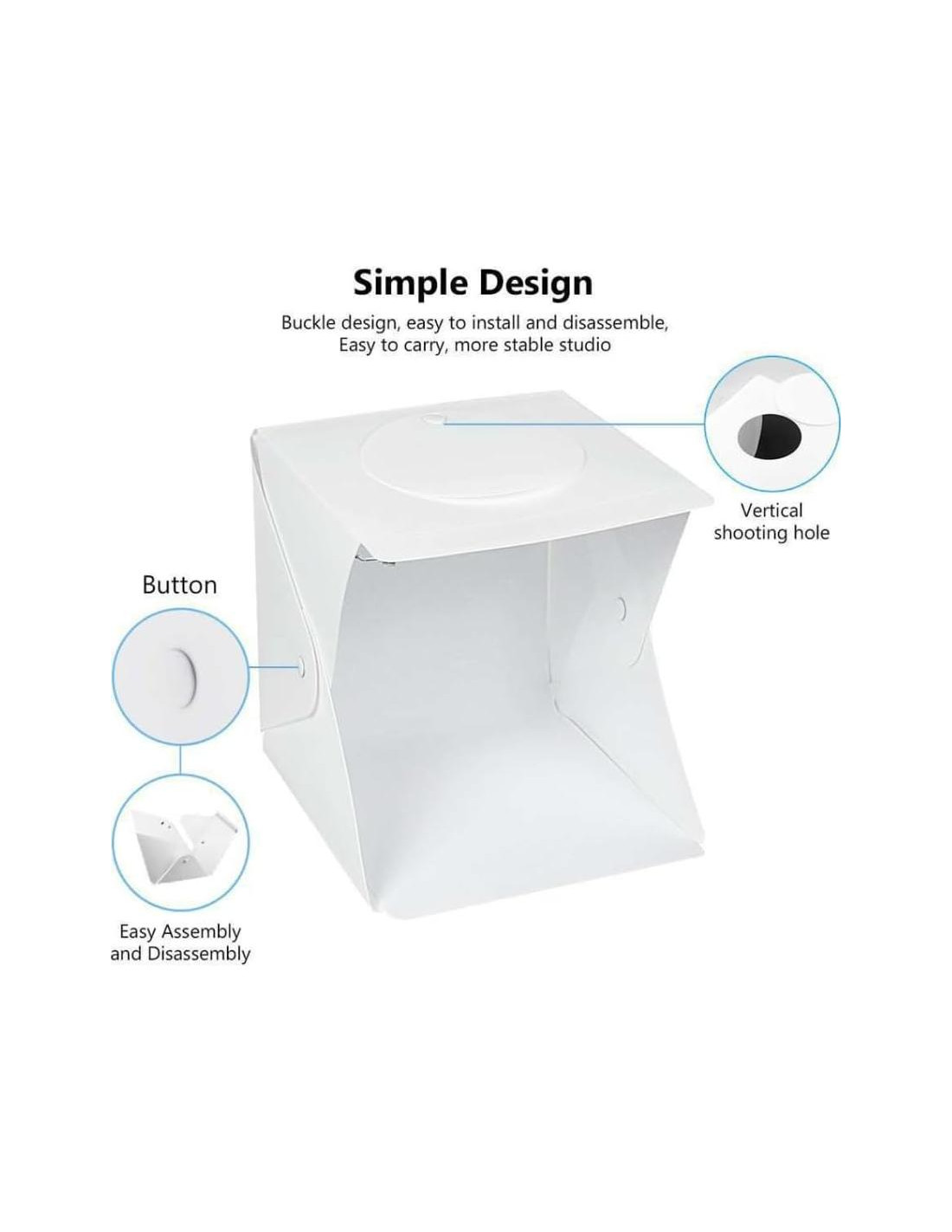 ¿Tienes dificultades para capturar fotos impresionantes de tus productos? ¡No busques más que la caja de luz de estudio fotográfico portátil! Esta solución innovadora proporciona un entorno de iluminación profesional dondequiera que lo necesites. Perfecto para: Fotógrafos: Captura imágenes de productos nítidas y de alta calidad para listados en línea, redes sociales o materiales de marketing. Artesanos: Muestra tus creaciones hechas a mano en la mejor luz posible. Coleccionistas: Documenta tus posesiones preciadas con fotos detalladas y bien iluminadas. Cualquiera que Venda en Línea: Toma fotos de productos con apariencia profesional que llamarán la atención y aumentarán las ventas. La Caja de Luz de Estudio Fotográfico Portátil es compacta, conveniente y asequible. Es la solución perfecta para cualquiera que quiera elevar su juego de fotografía de productos.