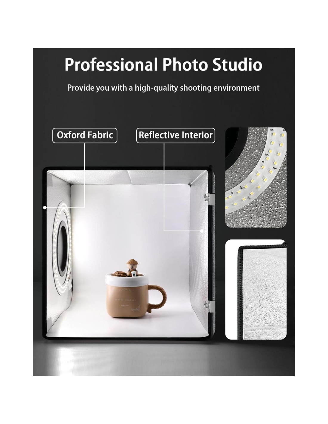 - Fácil de Instalar y Transportar: La Caja de Luz de Estudio Fotográfico plegable todo en uno se puede ensamblar rápidamente en 5 segundos - ¡sin herramientas requeridas! También viene con un diseño de puerto USB y una bolsa de transporte, lo que hace que sea conveniente para que la uses en cualquier momento y la lleves a cualquier lugar.