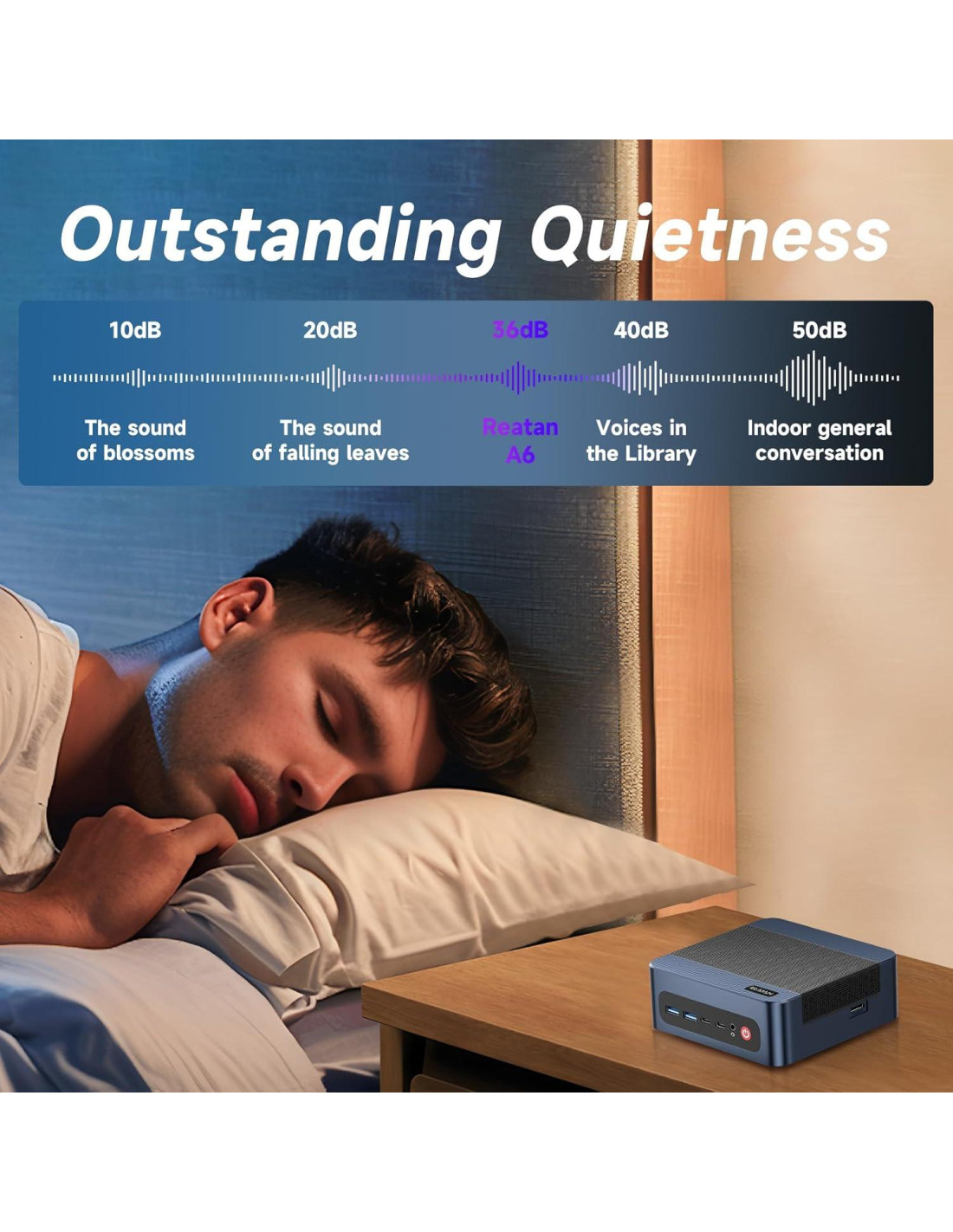 - Diseño Compacto, Operación Fresca y Silenciosa Con una huella ultra-pequeña (130*128*45mm), este mini PC ahorra 90% de espacio en el escritorio mientras mantiene un rendimiento potente. Su avanzado sistema de refrigeración asegura una operación silenciosa y estable incluso bajo cargas pesadas, sin estrangulamiento, solo eficiencia implacable.
