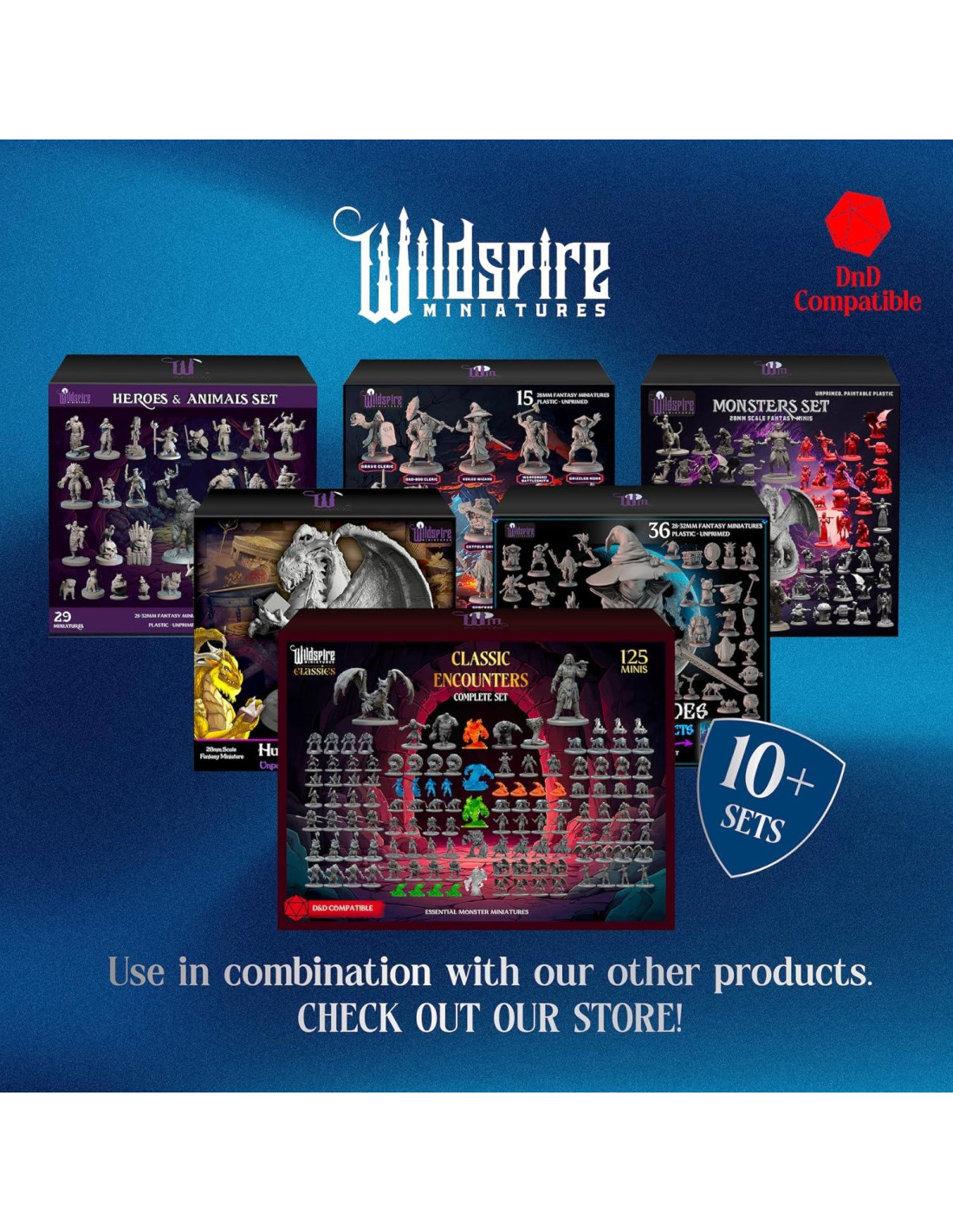 - Acerca del Conjunto de Banda de Mercenarios Clásica de Wildspire: Total de 25 minis únicas para dnd. Hechas para pintura de hobby y juegos de dnd. Hechas de plástico, completamente ensambladas y pintables; diseñadas en escala de 28mm para D&D y juegos de fantasía; perfectas para mejorar tu experiencia en la mesa de juego con figuras de dnd. También incluye 3 miniaturas de monstruos jefes. Todas compatibles con miniaturas de Dungeons y Dragones.