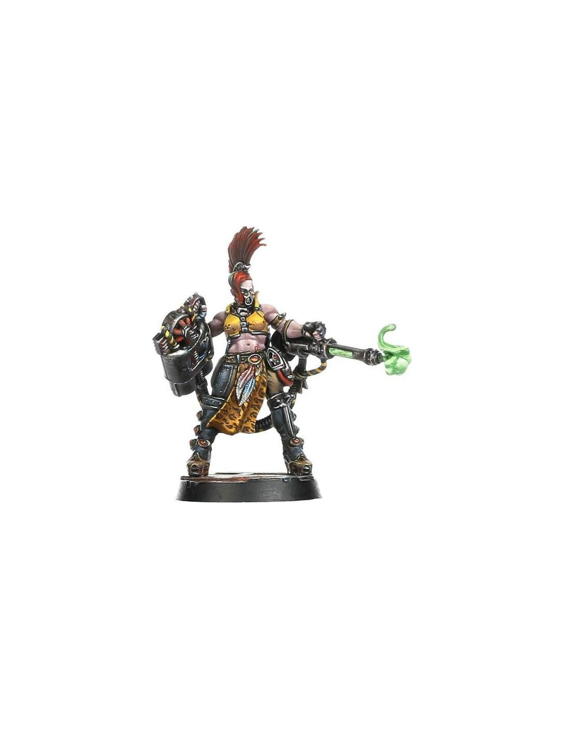 Descripción del producto Lanzado 24/11/17 La Casa Escher es única entre las grandes Casas de Necromunda, ya que sus bandas están compuestas enteramente por mujeres. Maestras de productos farmacéuticos y manipulación química, lo que a una Escher le puede faltar en términos de fuerza física bruta, lo compensa con velocidad, habilidad y pura locura psicótica. Ensambla tu propia banda Escher - o añade a las miniaturas que se encuentran en la caja de Necromunda: Underhive - con este conjunto de 10 miniaturas de plástico. Han sido diseñadas para proporcionarte una gran cantidad de variedad y opciones en el ensamblaje, lo que significa que cada banda será única. Incluido: - 10 cuerpos - 2 de cada uno de 5 diseños únicos - cada uno usando armadura de flak. Estos han sido diseñados con opciones de armas específicas en mente, aunque por supuesto eres libre de modelarlos como desees; - 18 cabezas - 2 de cada uno de 9 diseños únicos - 4 con máscaras de respirador. Hay 14 piezas de cabello diferentes - 2 de cada uno de 7 diseños diferentes - que pueden encajar en la cabeza que elijas; - ¡Armas! Hay bastantes de estas: 6 rifles láser, 8 pistolas láser, 6 cuchillas de estilete, 2 escopetas, 4 espadas de energía, 2 pistolas automáticas, 2 látigos eléctricos, 2 pistolas de aguja/bolter, 2 pistolas de plasma, 2 lanzadores de químicos y 2 fusiles automáticos, junto con granadas adicionales de fragmentación, krak y gas lacrimógeno, 4 cuchillas de estilete envainadas y 2 conjuntos de paquetes de síntesis química. Suministrado con 10 bases redondas de 25mm, que presentan texturas esculpidas que coinciden con la estética del tablero de juego. El conjunto contiene: 10x Miniatura