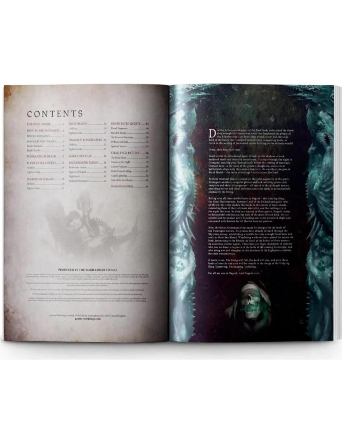 Dentro, encontrarás: - Reglas completas para las siguientes bandas de guerra: Cortes de Devoradores de Carne, Legiones de Nagash, Nighthaunt y Ossiarch Bonereapers. - Cartas de luchador para casi todos los modelos disponibles para la Gran Alianza: rangos de Muerte. - Reglas para dos Monstruos de la Muerte: Terrorgheists y Dragones Zombis. - Reglas refinadas para incluir Monstruos en tu banda de guerra, así como nuevas habilidades para usarlas contra ellos. - Nuevas reglas para bandas de guerra con Runemarks de Facción mixta bajo la misma Gran Alianza y más de un Líder. - Tablas para nombres de guerreros, orígenes de bandas de guerra y antecedentes de líderes. - 4 Misiones de Muerte Fated, incluyendo tablas de Botines de Victoria tanto para Honor como para Gloria. - 6 Batallas de Desafío de Muerte, incluyendo reglas especiales y valiosos Botines. Si te sientes obligado a recolectar las almas de los Ocho Puntos en nombre de Nagash, este libro de 64 páginas en tapa blanda es para ti. Se requiere una copia del Libro Base de Warcry para hacer pleno uso del contenido de esta expansión.