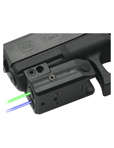 - Miras láser duales: Lleva tu precisión al siguiente nivel con miras láser duales. Las miras láser azul y verde de <5mW ayudan a que aciertes en tu objetivo, ya sea de día o de noche