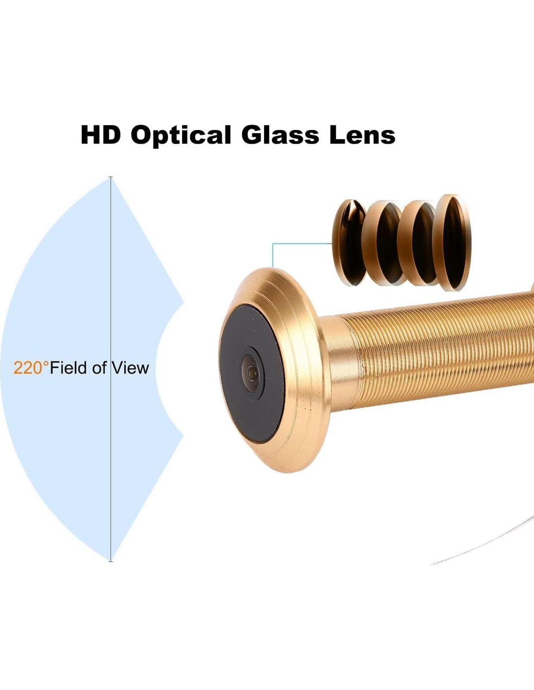 - Visión Nocturna: La carcasa de la cámara de mirilla de puerta está hecha de aleación de aluminio, y el lente está reforzado con vidrio duro para evitar daños deliberados, incorporando luz de visión nocturna infrarroja de alta potencia, cambia automáticamente entre modo día y noche.