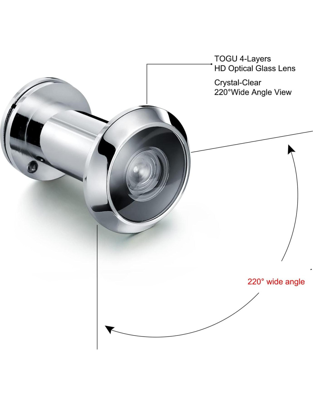 - Características especiales: La lente de vidrio óptico HD ofrece un ángulo de visión panorámico cristalino de 220 grados. La cubierta de privacidad de alta resistencia proporciona máxima privacidad y seguridad. Instalación sin complicaciones. La construcción de latón macizo garantiza una durabilidad de por vida. La garantía de por vida de TOGU siempre lo pone a usted primero.