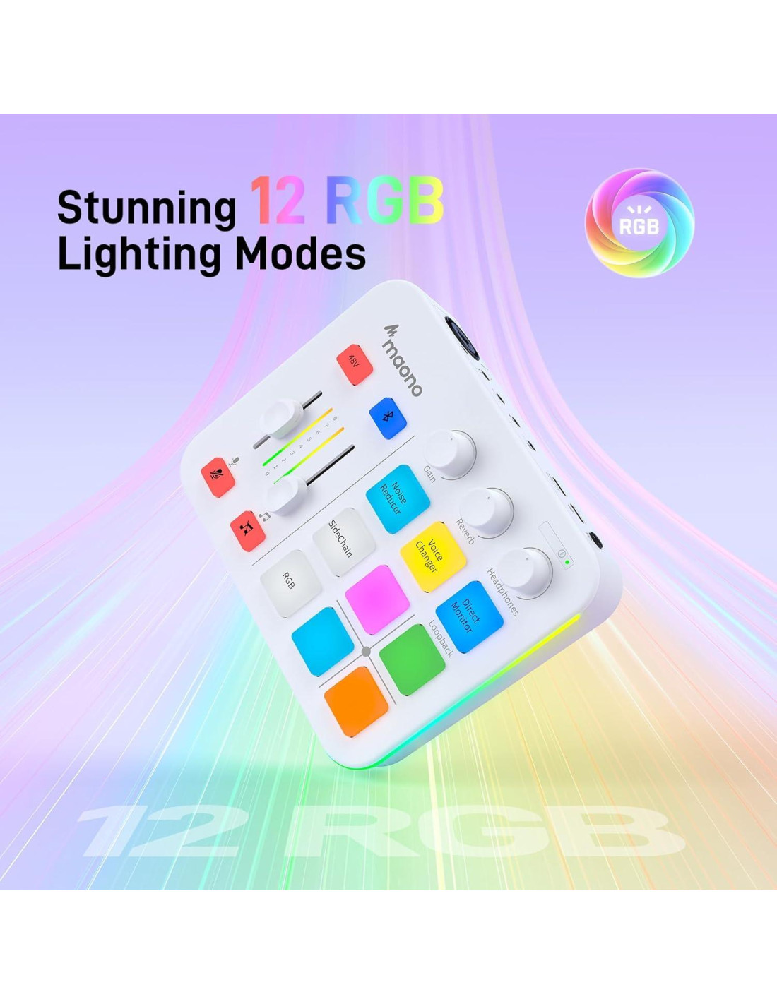 - MAONOCASTER G1 NEO es el equipo esencial para gamers y streamers novatos que se adentran en el mundo del streaming de juegos. Este mezclador de gaming no solo ofrece un rendimiento de sonido excepcional, sino que también integra efectos de sonido personalizados y cautivadora iluminación RGB para sumergirte en el juego o streaming. Su diseño compacto y su interfaz fácil de usar proporcionan una experiencia de juego agradable y más sencilla, facilitando tu camino hacia la victoria.
