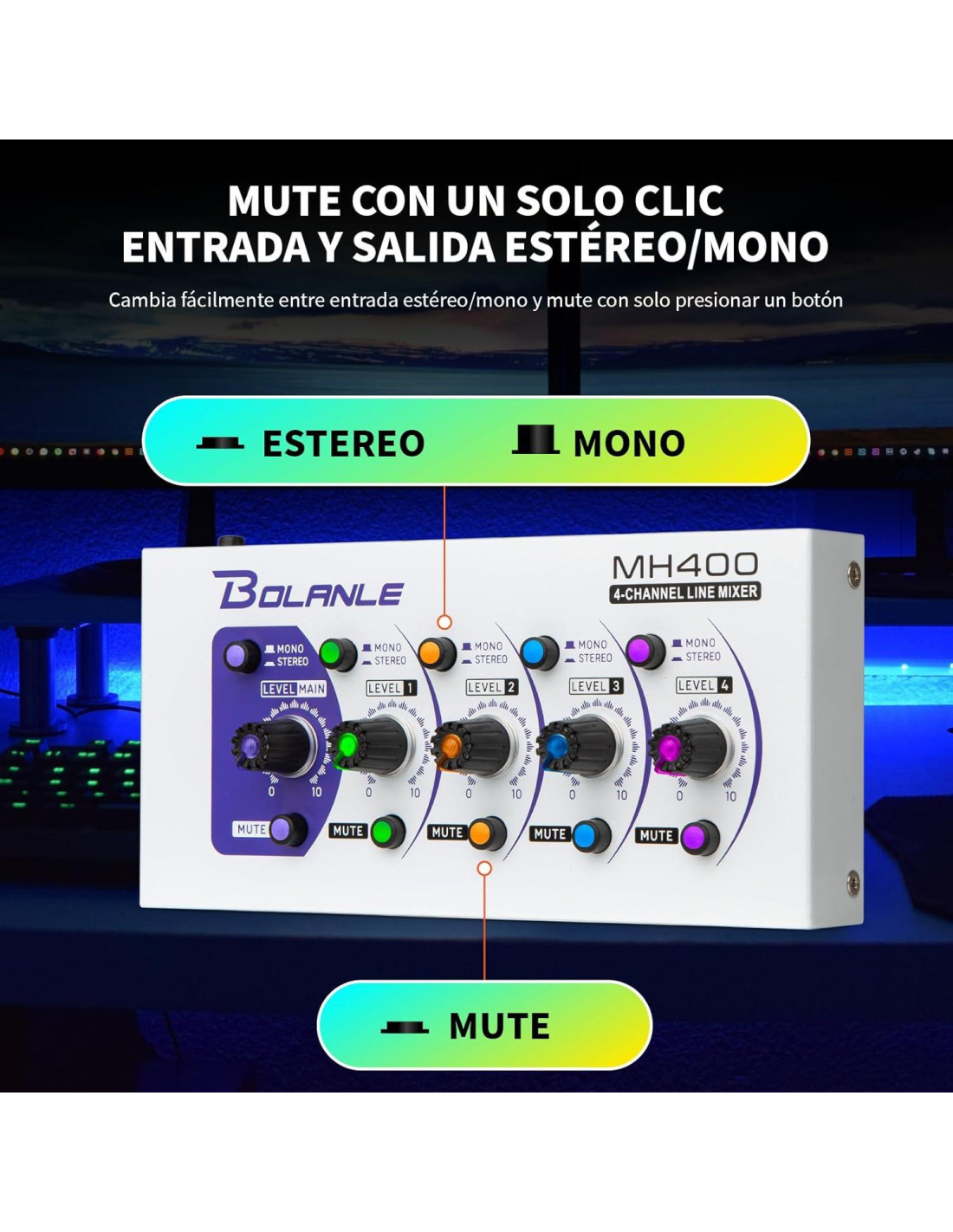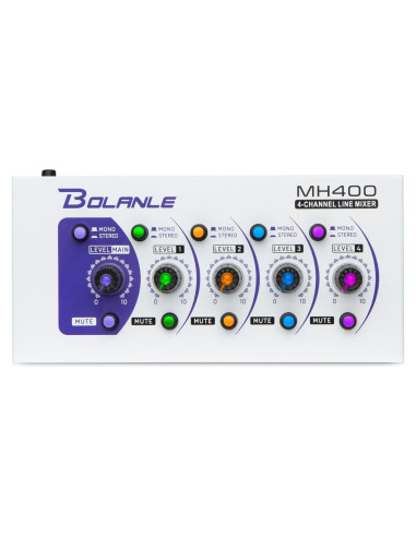 - AJUSTE INDEPENDIENTE: El pequeño mezclador Bolanle tiene interruptores de alternancia Mono y Estéreo independientes, perillas de ajuste de volumen y un botón de silencio de un toque para cada canal, así como para el nivel principal. Esto te permite hacer ajustes rápidamente para lograr el efecto deseado.
