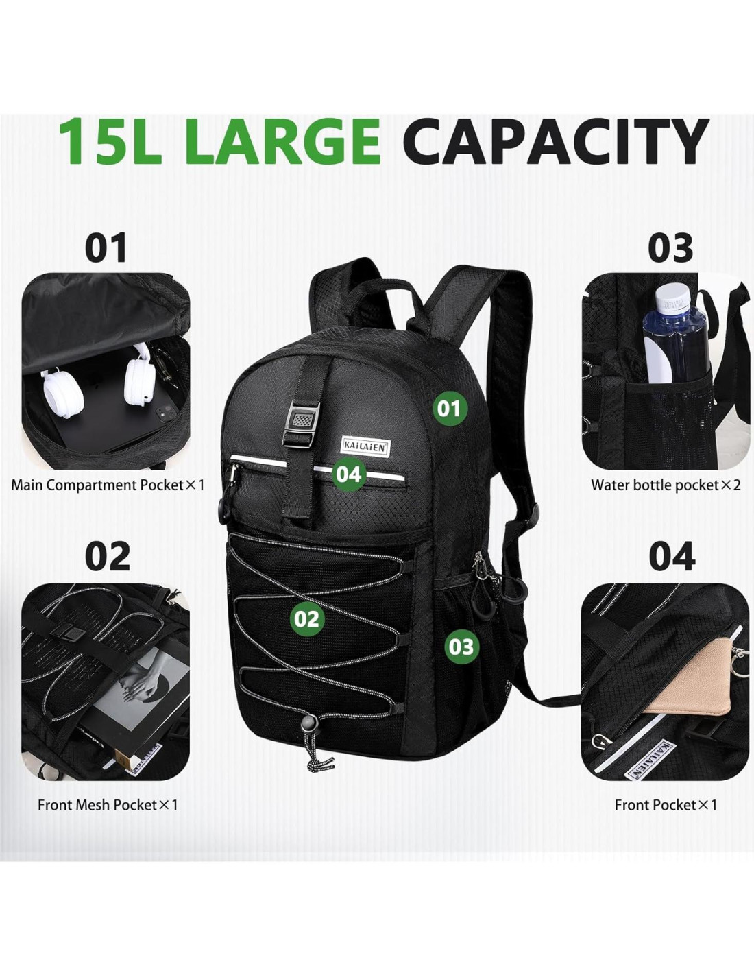- Tamaño: Esta mochila de senderismo mide 15 x 10 x 5 pulgadas (38.1 x 25.4 x 12.7 cm), tamaño plegado: 9 x 6 x 3.5 pulgadas (22.9 x 15.2 x 8.9 cm), pesa 0.27 kg. Su capacidad de 15L es perfecta para hacer que tus viajes cortos sean agradables y sin complicaciones.