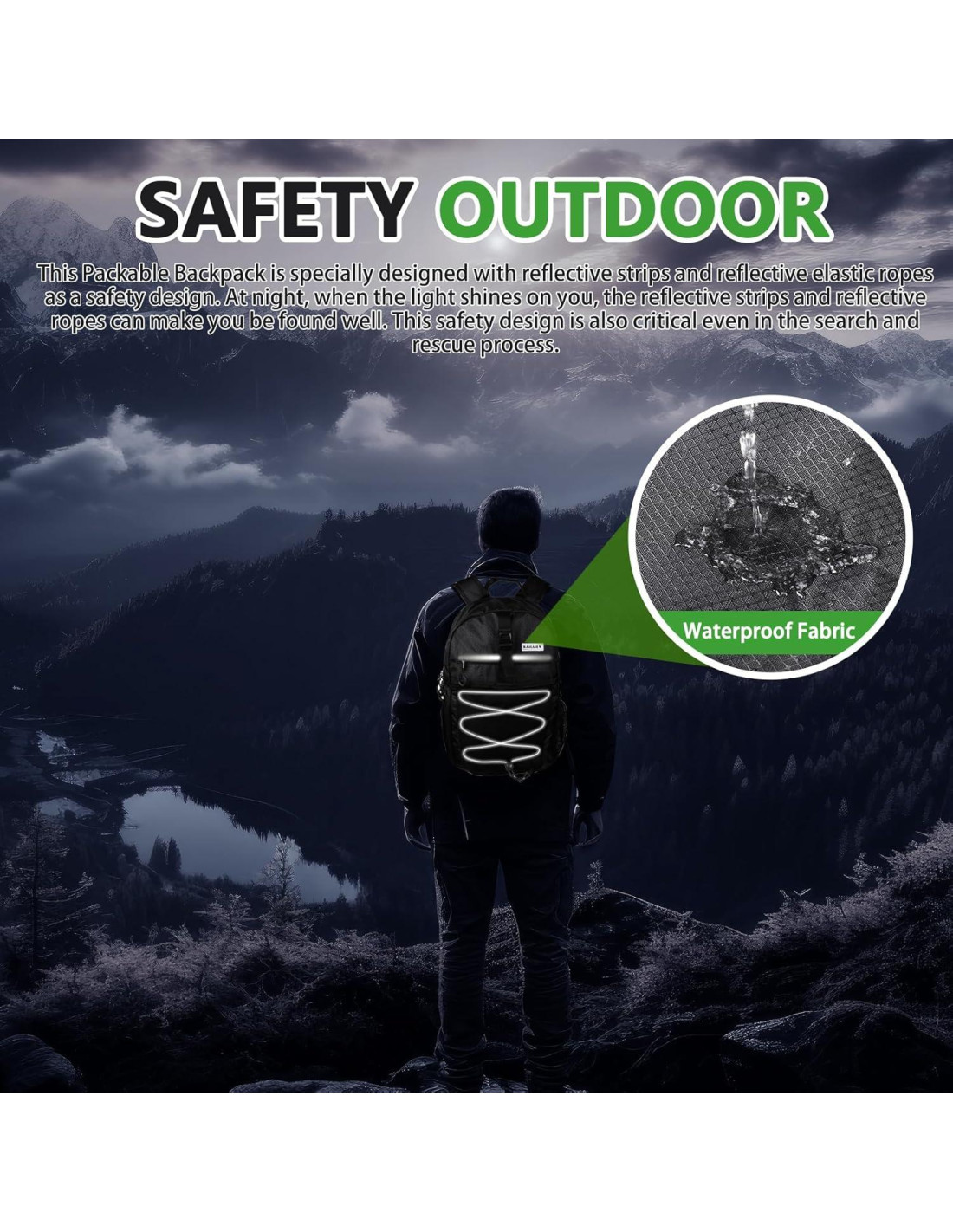 - Seguridad = Exterior: Esta mochila plegable está especialmente diseñada con tiras reflectantes y cuerdas elásticas reflectantes como un diseño de seguridad. Por la noche, cuando la luz brilla sobre ti, las tiras reflectantes y las cuerdas reflectantes pueden hacer que te encuentren bien. Este diseño de seguridad también es crítico incluso en el proceso de búsqueda y rescate.