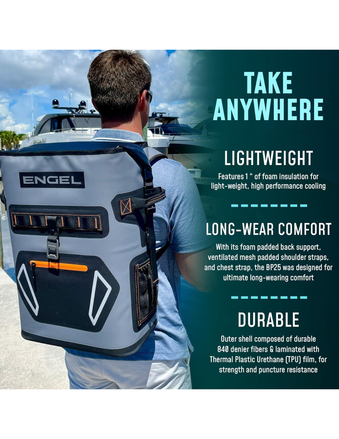 - UTILIDAD MEJORADA - Nuestra mochila enfriador impermeable está llena de características para elevar tu experiencia de aventura. Los bolsillos laterales de malla ofrecen almacenamiento adicional, mientras que los anillos en D integrados y las correas laterales te permiten sujetar equipo externamente. También hemos incluido un abridor de botellas de manera fluida en el diseño.