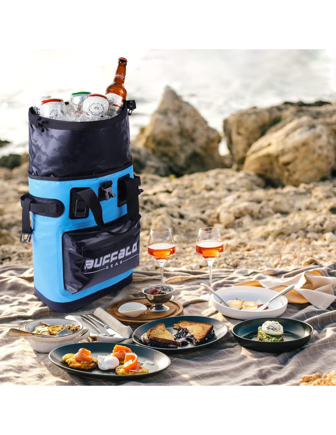Somos líderes establecidos e innovadores en la bolsa impermeable para exteriores. Fundada en 1996, Buffalo Gear es un fabricante global de bolsas impermeables que integra diseño, I+D, producción, fabricación, ventas y exportación de bolsas impermeables para exteriores. La mochila enfriadora Buffalo Gear es tu mejor compañera para todo tipo de actividades al aire libre. Con dos cómodas correas para los hombros y un asa de transporte, puede mantener tus manos libres mientras acampas, haces senderismo o vas a la playa. Impermeable y a prueba de fugas. Resistente al desgaste y a los pinchazos. Mantiene el frío más de 24 horas. Bolsillo frontal con cremallera. Abrebotellas integrado. Se puede llevar al hombro o a mano. Fácil de limpiar, solo limpia con un paño húmedo.