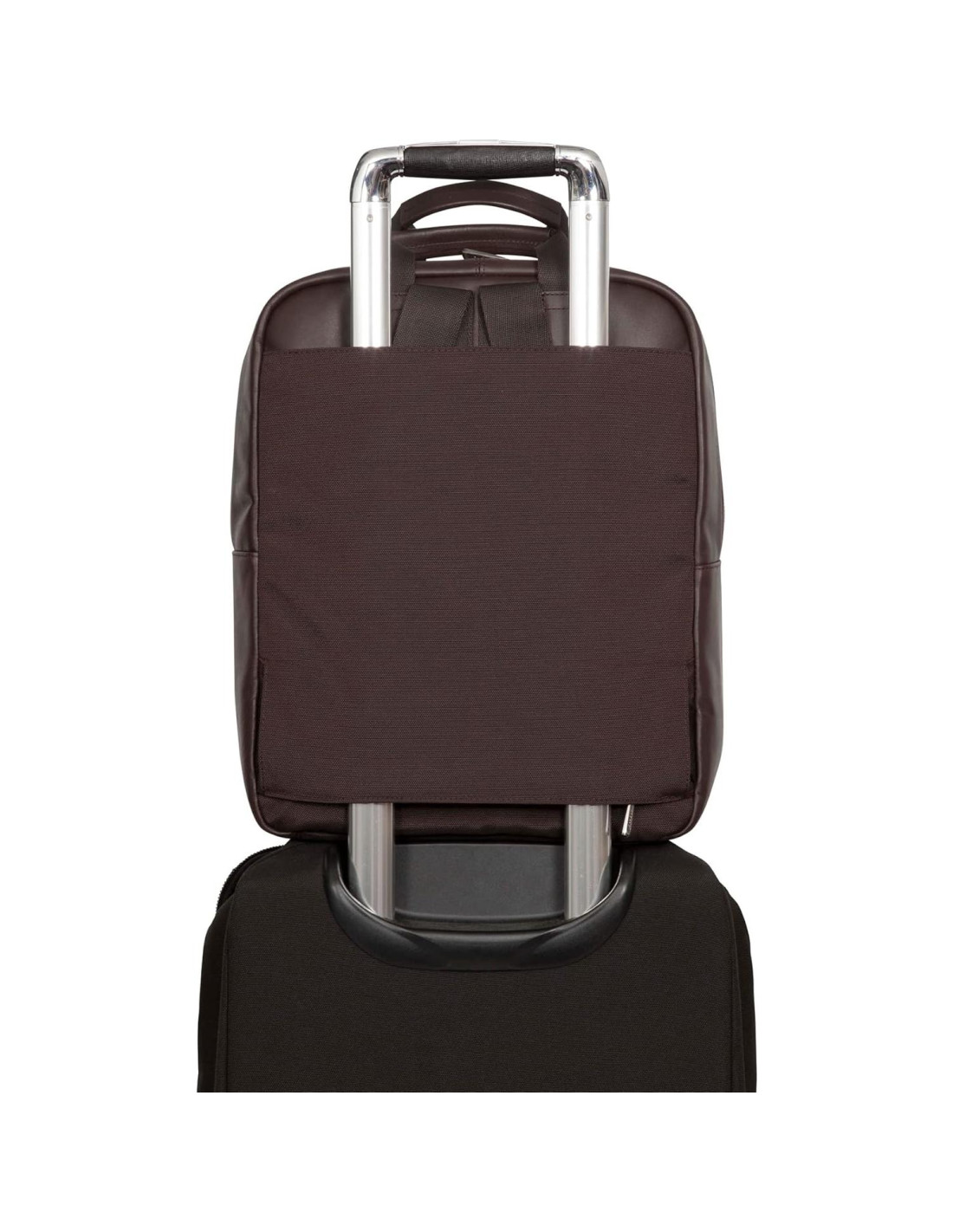 - El bolsillo exterior trasero es un gran lugar para guardar tu correa cuando no está en uso, y su cremallera oculta te permite deslizar tu mochila sobre una maleta y viajar con las manos libres.