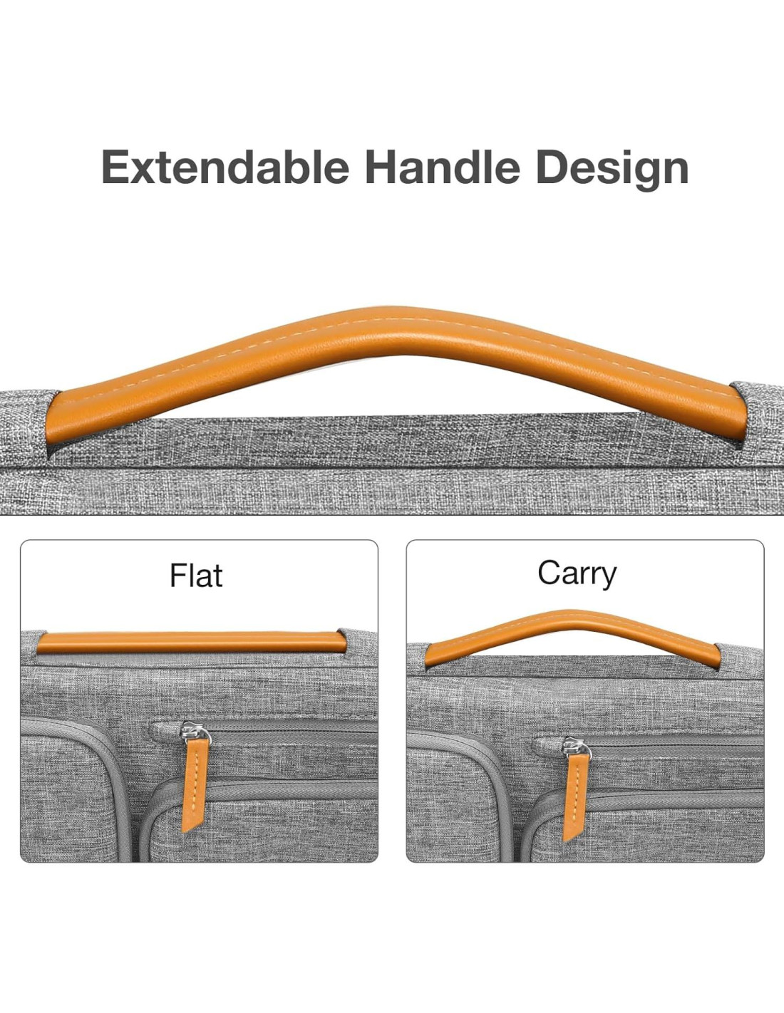 - Funda de maletín protectora reforzada de 360 grados que protege tu laptop de cualquier caída accidental. El diseño del asa extensible permite llevar tu laptop cómodamente, también puedes guardar el asa. Diseño de cremallera de apertura lateral, evita caídas accidentales de tu laptop mientras la transportas. 4 bolsillos frontales con cremallera ofrecen suficiente espacio para guardar el mouse, auriculares, bolígrafos y blocs de notas, brindando mayor comodidad.