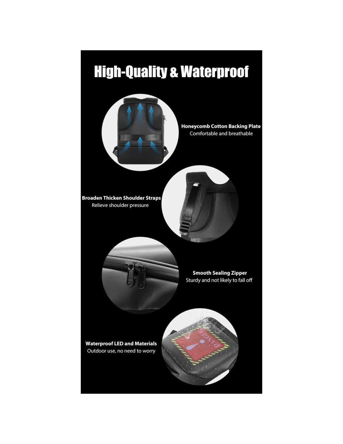 - Mochila LED Única: Esta mochila innovadora cuenta con un panel de pantalla LED a color de alta definición de 96*128 píxeles con un tamaño de 7.84*10.83in (20*27.5cm). La distancia entre píxeles es de solo 2mm, lo que le permite mostrar texto o imágenes dinámicas con gran precisión. Genial y llamativa, adecuada para ciclismo, trabajo, escuela, promoción publicitaria, varios festivales y fiestas. Cuando apagas la pantalla LED, es apenas visible contra el fondo negro y puede usarse como una mochila ordinaria.