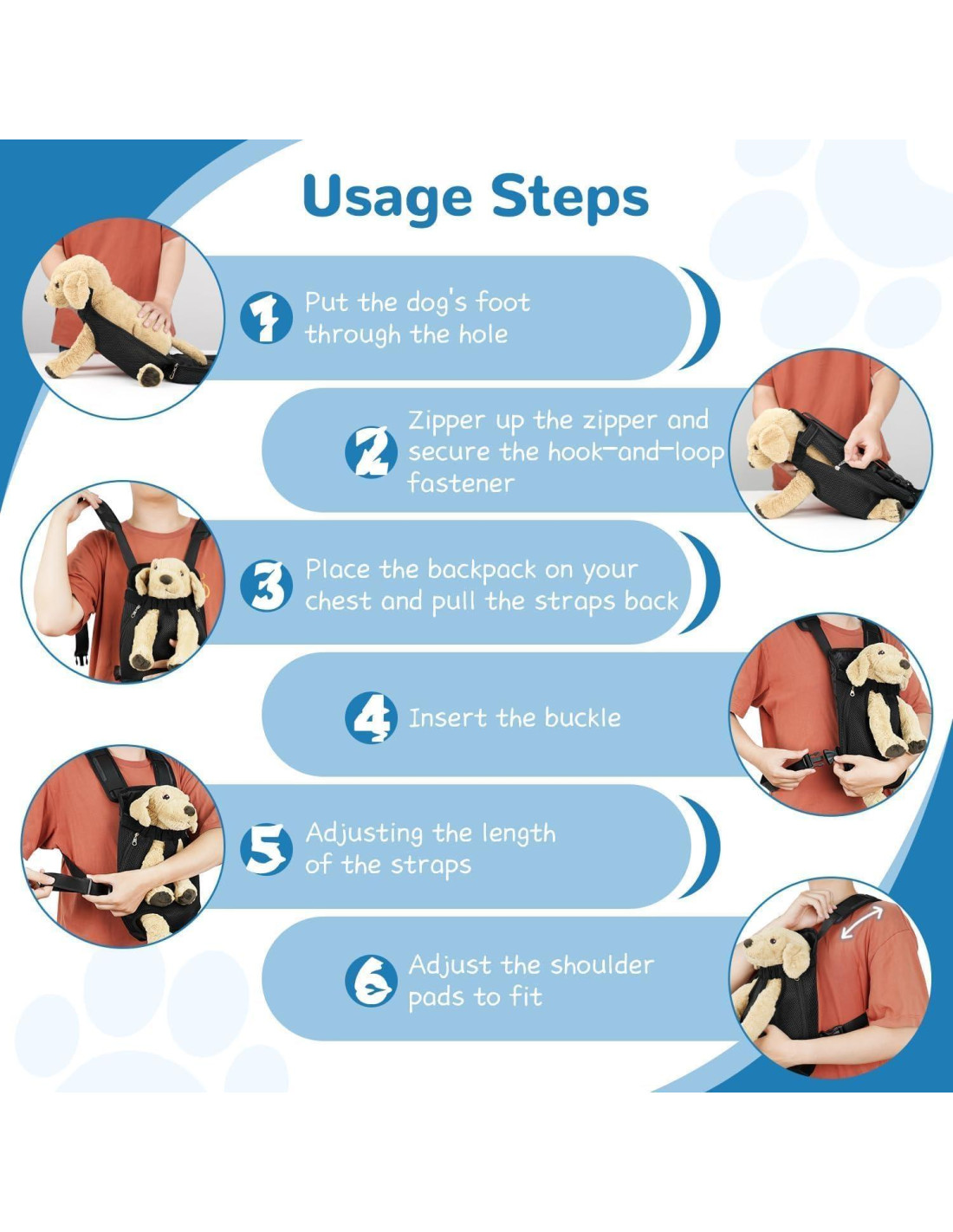 - 3 Tamaños Disponibles para Tu Querida Mascota: El peso sugerido para la mochila transportadora frontal es solo para referencia. Si la longitud del cuerpo de tu perro requiere tamaño S pero la circunferencia requiere tamaño M, por favor elige tamaño M. Además, deja al menos una pulgada (2,54 cm) extra para asegurar la comodidad de tu mascota.