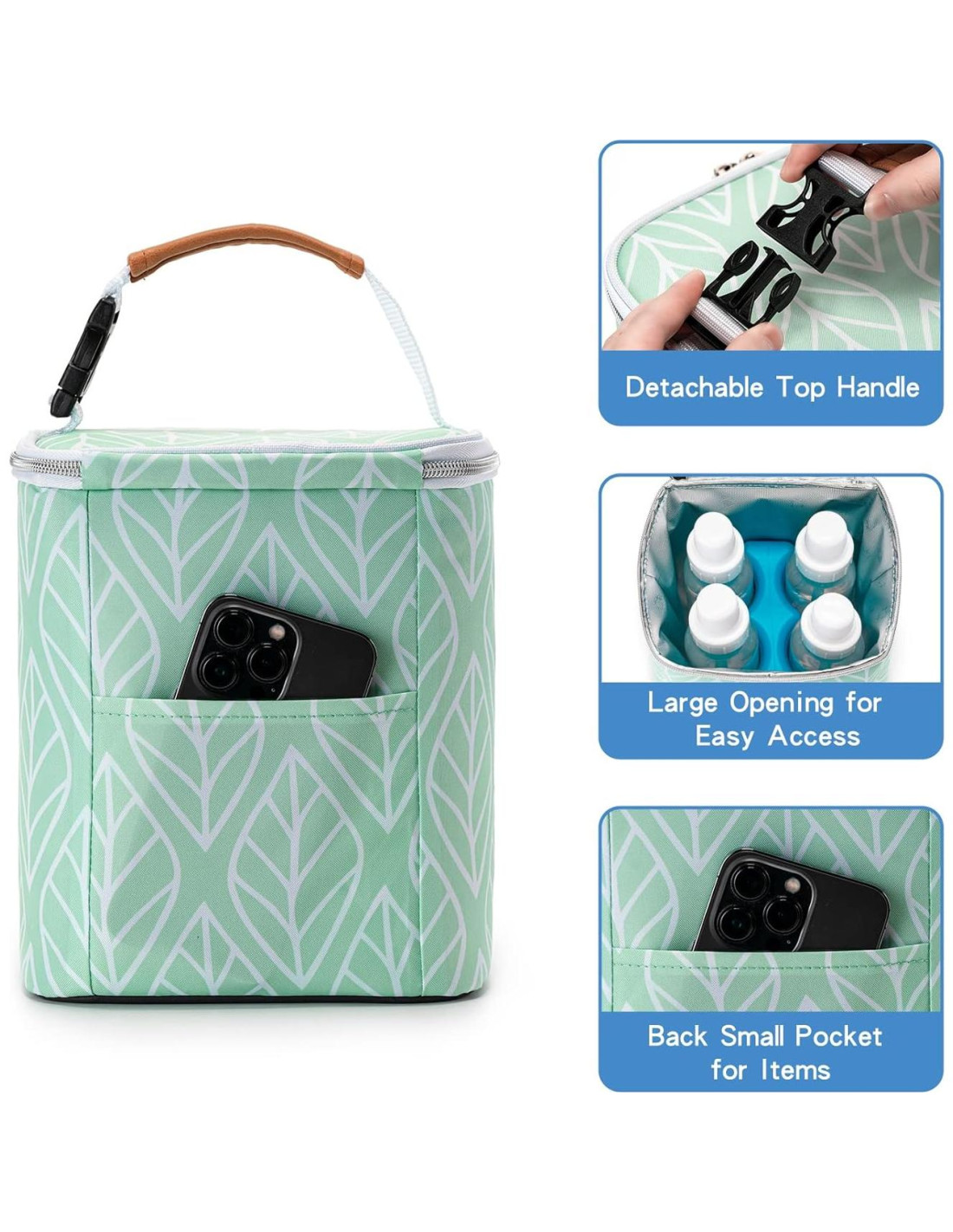 - Bolsa enfriadora de gran capacidad que se adapta a 4 biberones de 9 onzas (266 ml) cada uno e incluye un paquete de hielo para mantener la leche fría por hasta 8 horas.