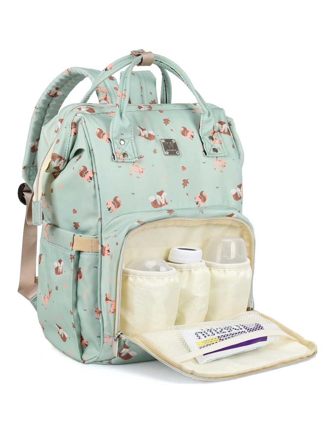 - [MULTI-BOLSILLOS] La bolsa para bebé contiene 18 compartimentos, incluyendo 1 espacio principal, 3 bolsillos para botellas de alimentación aisladas, 2 bolsillos laterales exteriores y 1 bolsillo trasero antirrobo, etc... Pañales, leche y botellas de alimentación, bocadillos, juguetes, artículos de cambio, pañuelos, y cosas de mamá como billetera, llaves, teléfono móvil, tableta, todo puede ser guardado en esta bolsa, manteniendo las cosas de su bebé ordenadas y fáciles de sacar.
