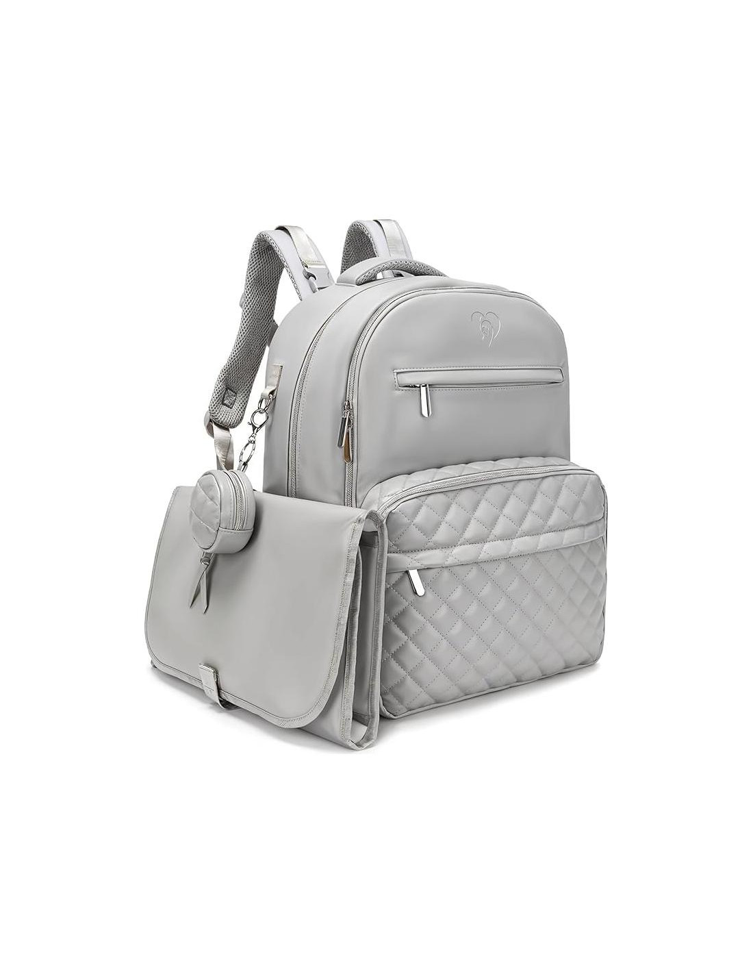 - ELEGANTE Y FUNCIONAL - Nuestra elegante mochila grande para pañales de cuero PU no es solo una declaración de moda; está diseñada para la conveniencia. Las características incluyen bolsillos aislados, clips para cochecito y una almohadilla para cambiar portátil, lo que la convierte en la mejor mochila para pañales para padres ocupados.