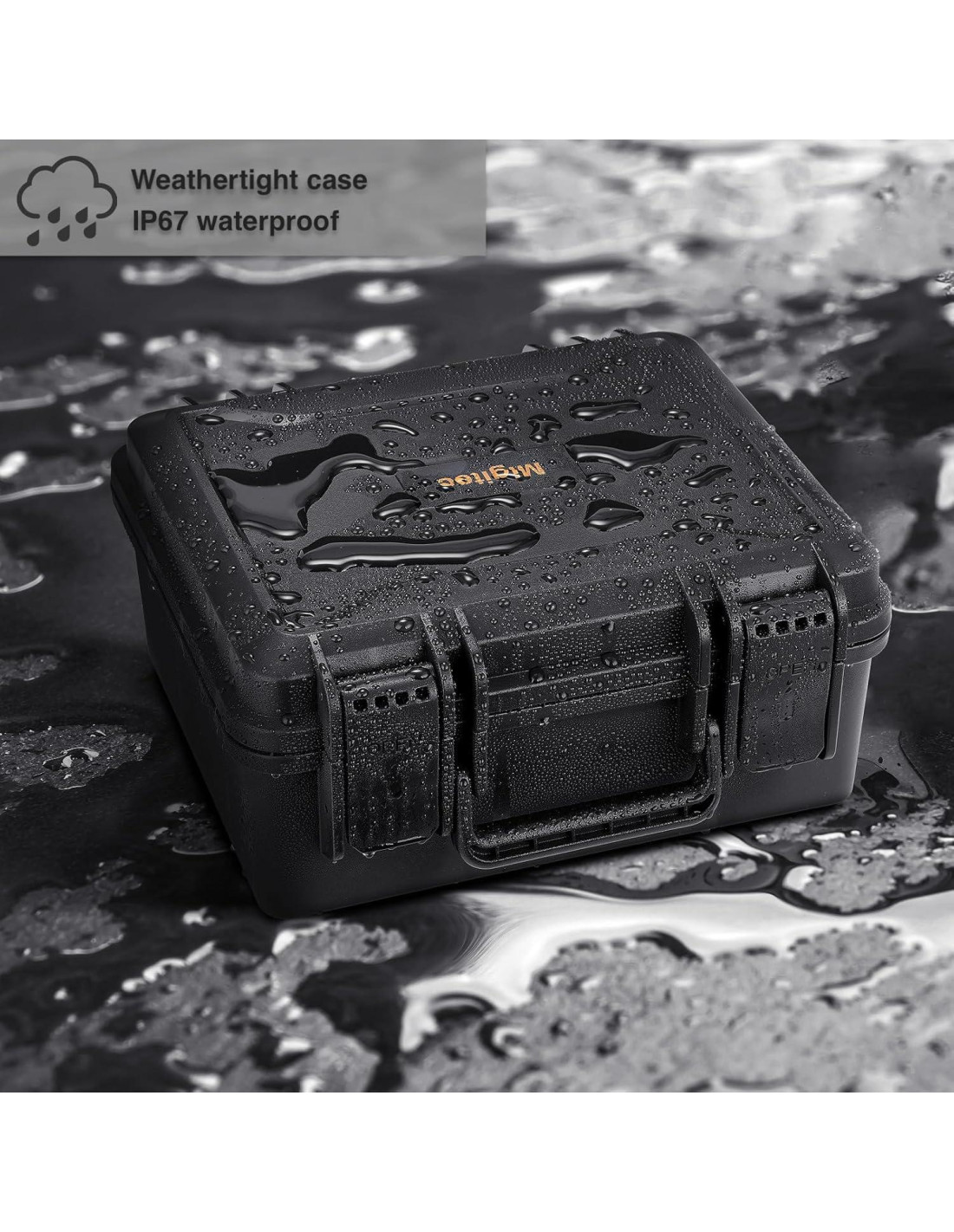 - EXCELENTES DETALLES: El estuche a prueba de clima es rígido y duradero, la tapa y la caja de almacenamiento están construidas con bisagras fuertes para hacerlo duradero, los cierres son convenientes para usar y aseguran que el estuche no se abra involuntariamente. Además, el estuche es portátil, sus dimensiones son 29.2 x 26.4 x 14.4 centímetros.
