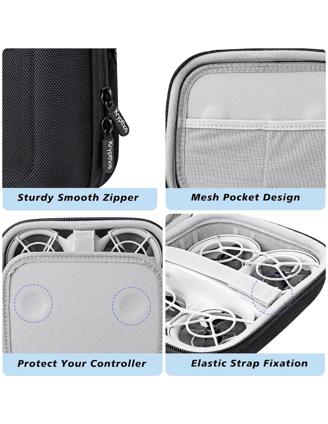 - Funda Perfecta Diseñada Para DJI Neo: La funda de hombro portátil Krypthos diseñada específicamente para el DJI Neo asegura un ajuste ceñido, ofreciendo protección para el drone, el control remoto RC-N2 y accesorios (como cables, baterías y hélices) de rasguños y otros daños potenciales. Está construida para mantener todo organizado y seguro mientras estás en movimiento.