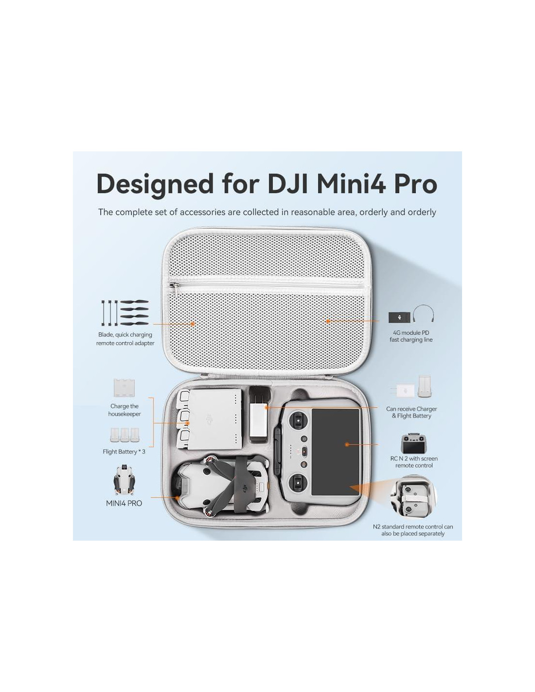 para DJI Mini 4 Pro/Mini 3 Serie Fly More Combo, También puede ser para DJI Mini 4 Pro/Mini 3 Serie Fly More Combo para DJI Mini 4 Pro/Mini 3 Serie Fly More Combo, También puede ser para DJI Mini 4 Pro/Mini 3 Serie Fly More Combo Diseño de espacio expandido, espacio de almacenamiento múltiple para DJI Mini 4 Pro/Mini 3 Serie Fly More Combo, También puede ser para DJI Mini 4 Pro/Mini 3 Serie Fly More Combo, estación de carga de batería y accesorios de dron ordenadamente en el bolsillo de malla más grande y ciérralos bien. La esponja precortada mantiene tu teléfono y accesorios ordenados y en su lugar mientras es a prueba de golpes, dentro de la funda para proteger tus dispositivos de rasguños, golpes, polvo, etc. El interior de material de cuero PU está hecho de espuma de alta densidad. Tiene una textura hermosa, fácil de limpiar y especialmente personalizado para alta gama.