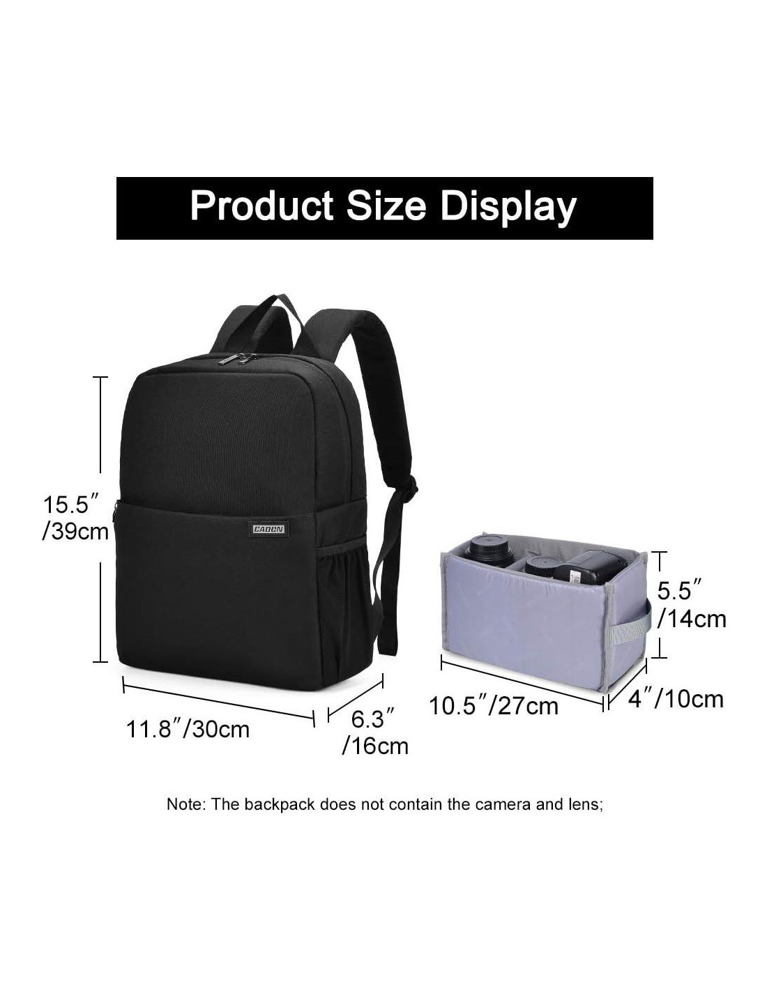 - [Gran Capacidad] Dimensiones: 30*16*39cm (11.8*6.3*15.5" (LxWxH)). Acomoda 1 cámara + 2 lentes + trípode + laptop de 14" + accesorios para teléfono. O DJI Mavic Pro/Air. No solo es una mochila de cámara profesional y de moda, al sacar la bolsa interior, también puede usarse como bolsa de viaje de moda.