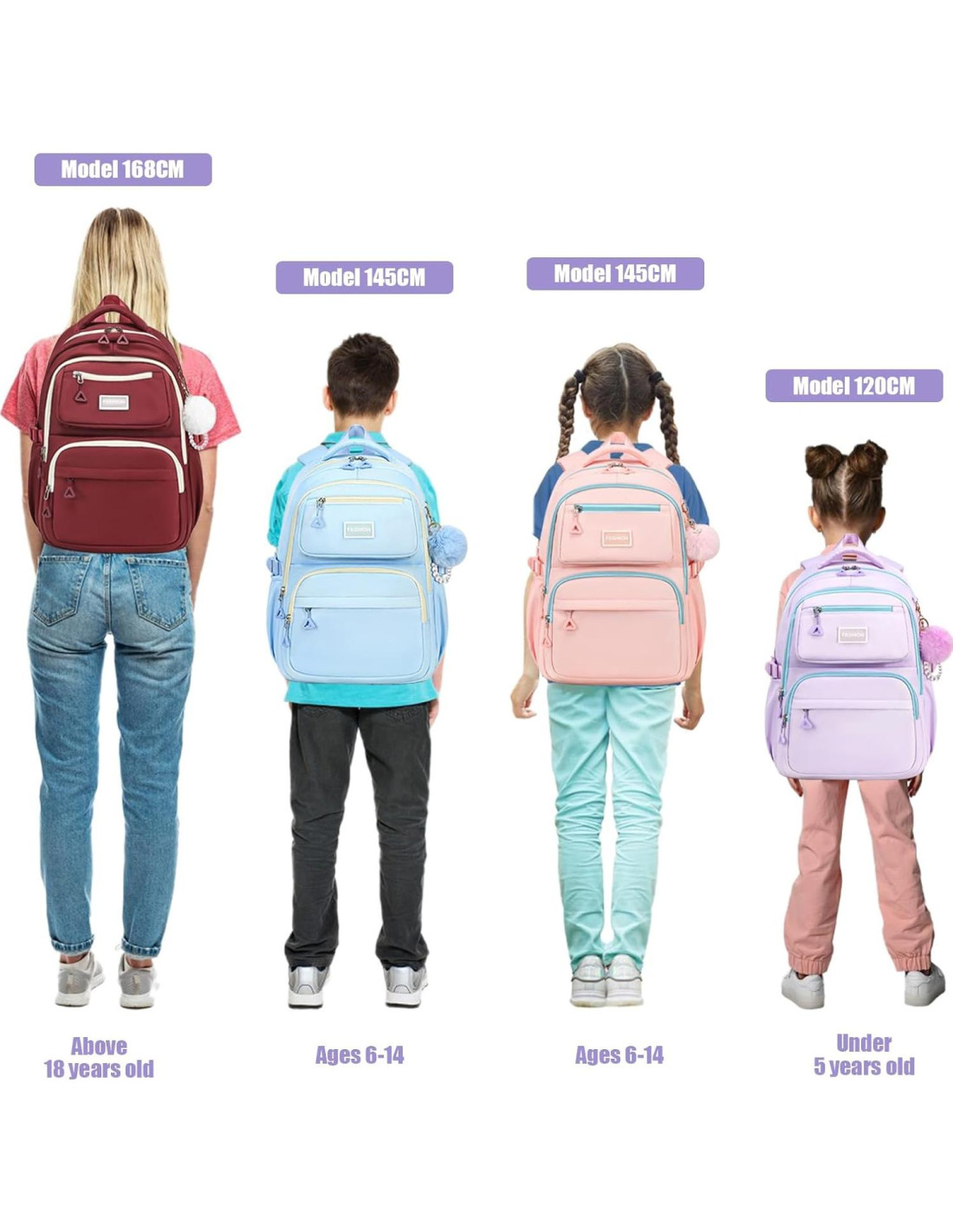 - DISEÑO ERGONÓMICO: Diseñada pensando en la comodidad, nuestra adorable mochila escolar tiene 3 características únicas: diseño ergonómico en "S" que se ajusta a los hombros; esponja ventilada de miel de alta elasticidad en el panel trasero; correas de hombro acolchadas, gruesas y anchas. Estos diseños liberan la presión de los hombros y la espalda de tus hijos, es adecuada para que los estudiantes la lleven todo el día.