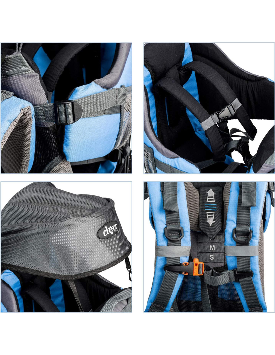 Esta mochila portabebés ClevrPlus está hecha de un marco de metal fuerte pero ligero y tela oxford 600d, puede resistir las inclemencias del tiempo y el uso diario. Cuenta con múltiples bolsillos, almohadillas de hombro gruesas, cinturón de cintura acolchado y dos portabotellas de agua laterales. Gran bolsillo trasero para pañales y necesidades, que también cuenta con una tira reflectante de seguridad a lo largo del bolsillo trasero. La capota solar se puede quitar fácilmente en cualquier momento. El portabebés cuenta con un sistema de ajuste fácil para proporcionar un ajuste cómodo para usted y su hijo. Los soportes de metal en la mochila permiten que se mantenga erguida en una superficie plana para ayudarlo a poner a su hijo dentro y fuera de nuestro portabebés. Se pliegan rápidamente cuando está en movimiento. Se pliega plano para un fácil almacenamiento y portabilidad. Ideal para niños de hasta 36 meses. Detalles Colores Disponibles: Negro Medianoche, Rojo Merlot, Azul Verdadero. ¡Solo pesa 6.5 libras (2.95 kg)! Marco de metal plegable se pliega plano Múltiples bolsillos incluyendo dos bolsillos para botellas de agua Almohadillas de hombro gruesas y refuerzos Se sostiene fácilmente en la mesa con soporte de pie La capota se puede quitar o plegar fácilmente fuera del camino Peso Máximo del Niño: 40 libras (18.14 kg) Ideal para Niños Entre 9 meses y 36 meses. La mayoría de nuestros artículos tienen una imagen y/o descripción del contenido en la caja. Por favor, envíenos un correo electrónico si desea que lo cubramos.