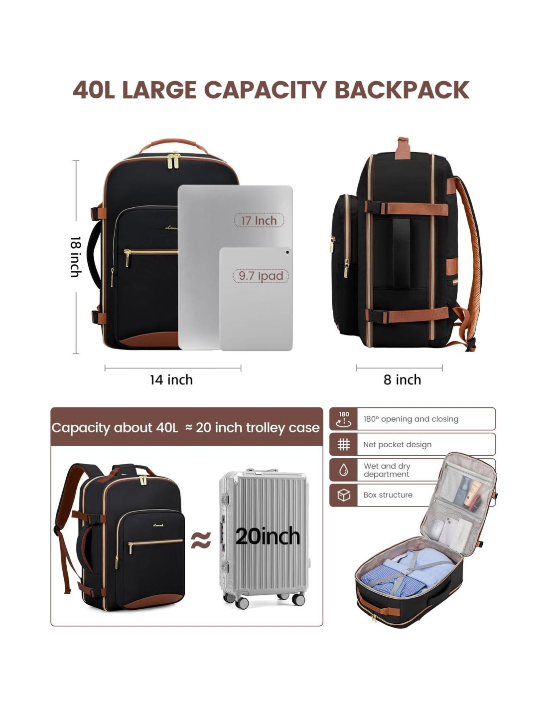 - [Espaciosa y Organizada] Con una capacidad de 40L, 4 compartimentos y muchos bolsillos, diseñada para permitirte separar y organizar fácilmente tus artículos personales de viaje, esta mochila de viaje puede acomodar de 3 a 7 días de artículos de viaje.
