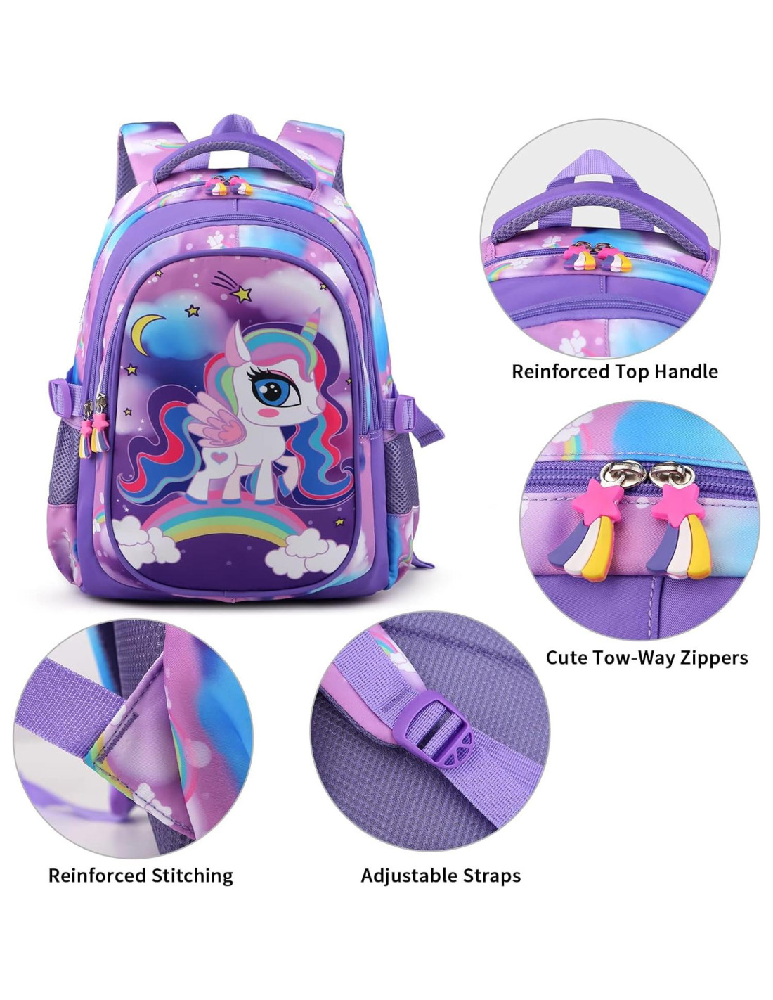 - Ocasión Multifuncional: Esta mochila escolar es adecuada para todas las necesidades de los estudiantes. El gran compartimento sostiene todas tus pequeñas cosas, estuches, ropa, billeteras, libros, loncheras, paraguas, botellas y más. También es genial para viajar, acampar, ir a museos, ir de compras, zoológicos y otras actividades al aire libre.