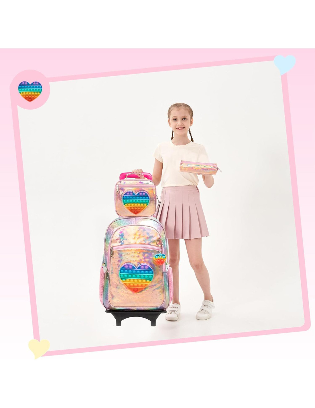 - [Gran Regalo] Esta mochila rodante para niñas tiene una apariencia exquisita y un acabado fino, y el bolsillo transparente en la superficie de la mochila está en línea con la tendencia, ya sea un regalo de Navidad o un regalo escolar, es una gran opción para sus diversas festividades, adecuada para la escuela, viajes, picnics, acampadas y otras salidas.