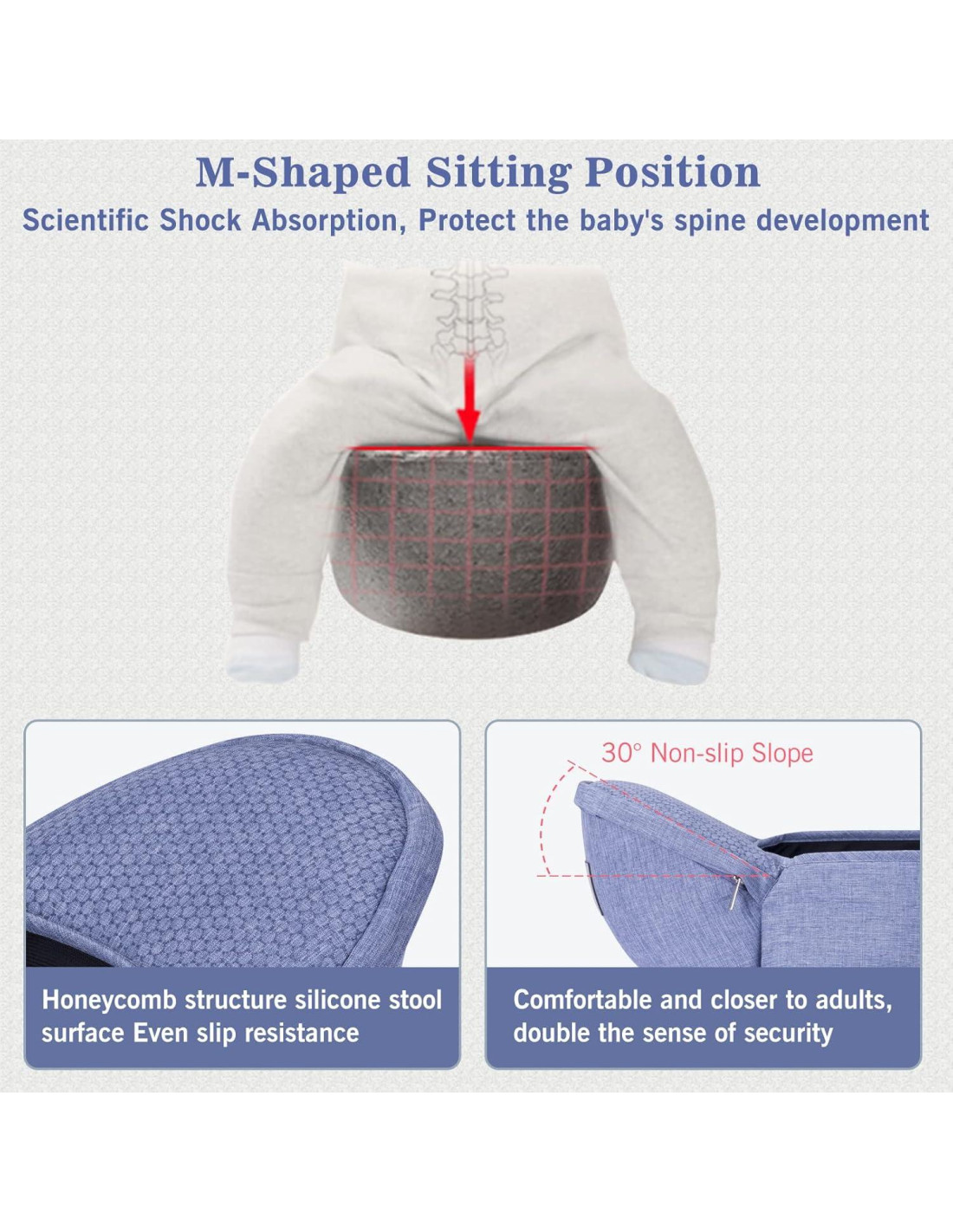 - Diseño Ergonómico: La posición en forma de M puede reducir efectivamente la fuerza en la articulación de la cadera y proteger el desarrollo normal de los huesos del bebé. El taburete antideslizante fija estrechamente el trasero del bebé, reduciendo así el impacto del movimiento en la columna del bebé al caminar.
