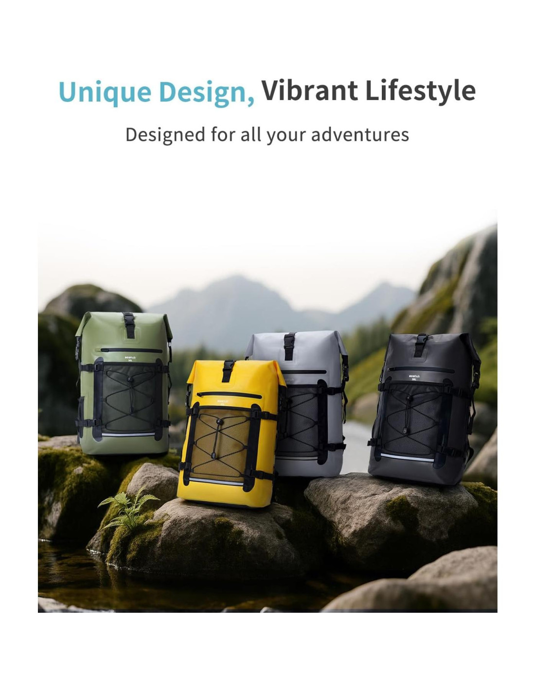 - [Sistema Impermeable Rápido] Mochila impermeable Ecohub diseñada con un cierre roll-top y una tira reforzada única para asegurar que el agua no entre. Alinea las correas en la parte superior de la mochila seca impermeable después de guardar tu equipo, simplemente pliega la bolsa hacia abajo 3-4 veces, abrocha y ¡estás listo para ir!