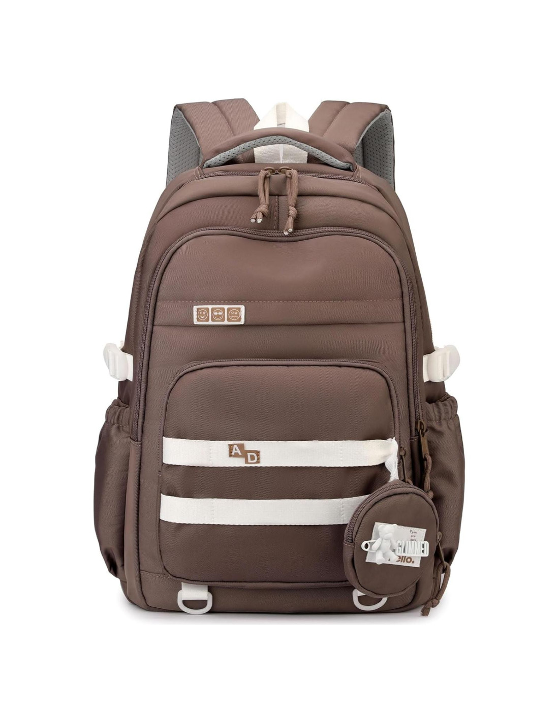 - [ Información del Tamaño del Producto ] -La mochila tiene una gran capacidad con múltiples bolsillos para almacenar artículos, tamaño de la mochila: 18.5 "H x 12.2 "W x 6.3 "D (46.99 cm x 30.99 cm x 16.00 cm), y el peso de la mochila: 0.6 Kilogramos. Y la mochila tiene una linda bolsa para llaves con un pin de oso, puedes poner tus auriculares, monedas, etc., muy práctica.