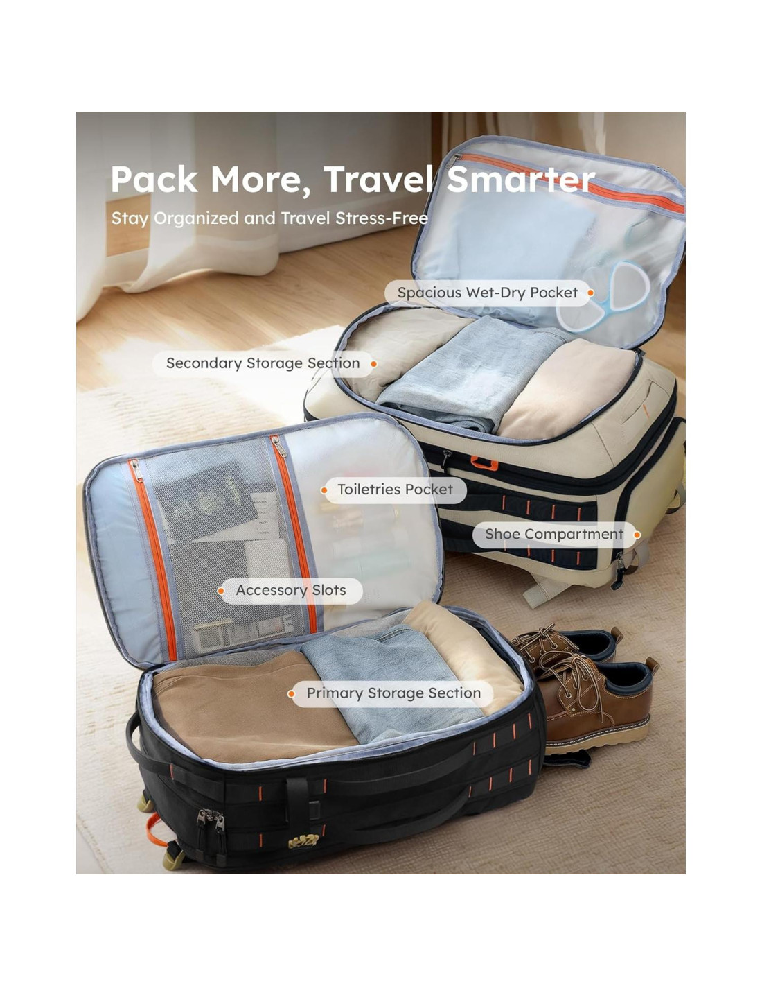 - [Diseño Expandible Inteligente y Acceso Fácil] La mochila de artículo personal es perfecta para viajes de hasta 5 días con almacenamiento principal de doble compartimento, manteniendo tu equipo organizado. Expande la mochila de viaje de 40L a 50L para souvenirs adicionales o comprímela con correas para ahorrar espacio. La apertura superior ofrece acceso rápido a chaquetas, bocadillos o documentos de viaje-perfecta para la vida en movimiento