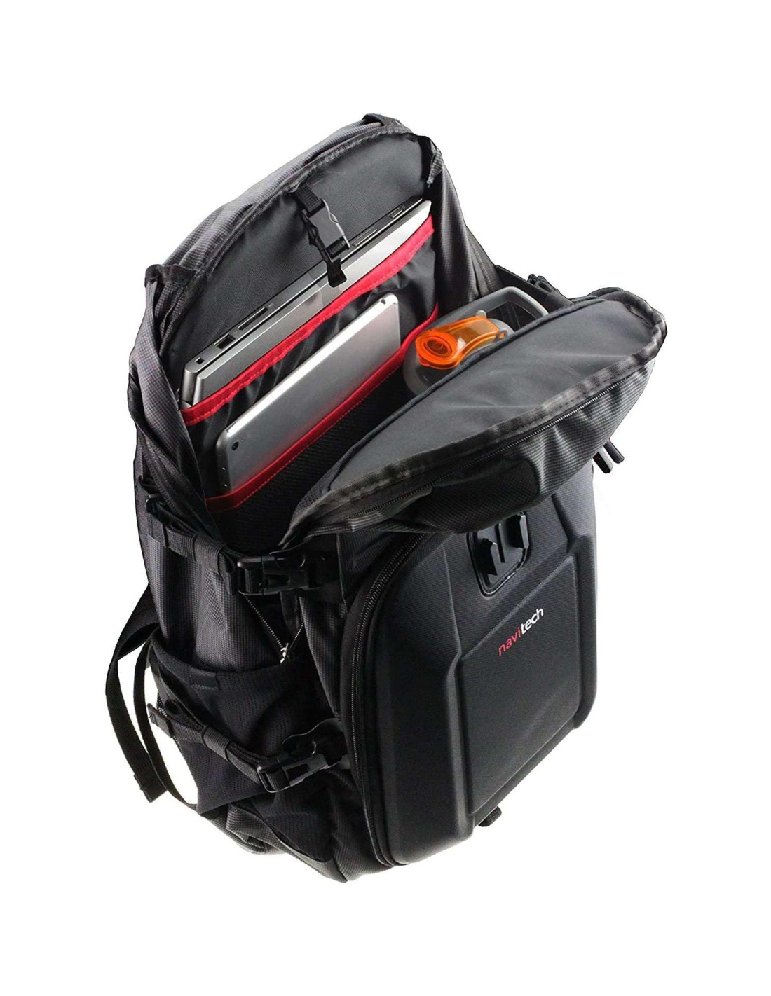 - Bolsillo frontal repelente al agua para mantener tu cámara de acción segura.