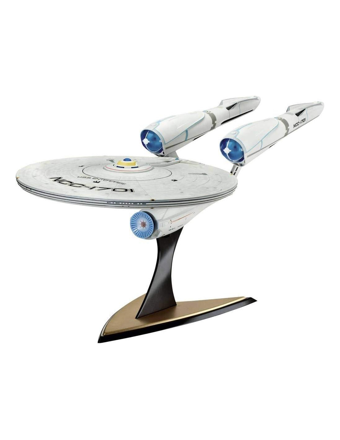 El kit de modelo Revell U.S.S. Enterprise NCC-1701 contiene 91 piezas. Una vez construido mide 58.8 cm de largo. En el verano de 2013, el director pionero J.J. Abrams presentará un emocionante thriller de acción que lleva 'Star Trek EN LA OSCURIDAD'. Cuando la tripulación de la Enterprise es llamada de regreso a casa, descubren que una fuerza imparable de terror desde dentro de su propia organización ha detonado la flota y todo lo que representa, dejando nuestro mundo en un estado de crisis. Con una cuenta personal que saldar, el Capitán Kirk lidera una cacería de hombres hacia un mundo de zona de guerra para capturar un arma de destrucción masiva de un solo hombre. A medida que nuestros héroes son impulsados a un épico juego de ajedrez de vida y muerte, el amor será desafiado, las amistades serán desgarradas y se deberán hacer sacrificios por la única familia que le queda a Kirk: su tripulación.