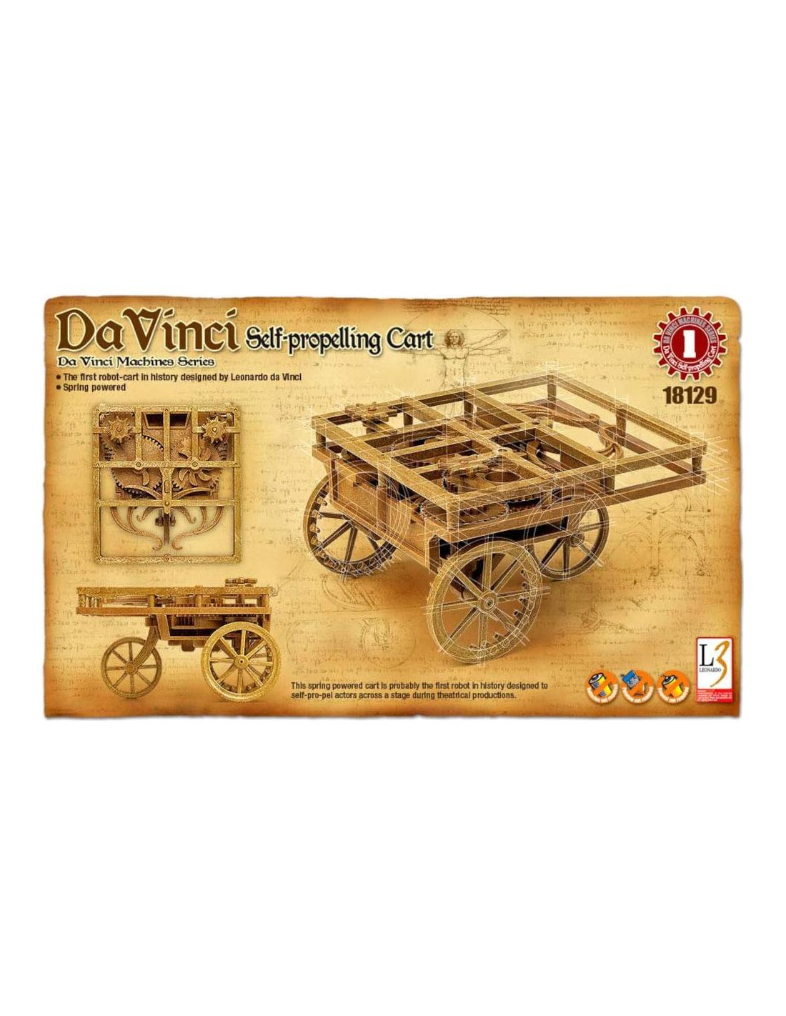 Desde el fabricante, el Carro Autopropulsado Da Vinci de Academy es una interpretación del dibujo original, diseñado durante la era del Renacimiento por el famoso científico y artista italiano, Leonardo da Vinci. Este kit de energía de resorte es un placer de construir, y se ensambla sin herramientas, pegamento, baterías y no necesita pintura. Imagina sostener un pedazo de historia en tu mano y que funcione también. Este Carro Autopropulsado fue el primer carro-robot en la historia y se utilizó para transportar actores de un lado del escenario al otro. Otro maravilloso modelo educativo en la serie de Máquinas de Da Vinci de Academy, este modelo de energía de resorte seguramente complacerá al estudiante histórico o al modelista en ciernes que busca un kit de modelo único, pero fácil de construir. Los ingenieros técnicos de Academy capturaron las maravillas de esta obra maestra mecánica, diseñada por la figura histórica más celebrada en ciencia y tecnología, haciendo de este modelo un placer para construir, exhibir o operar.