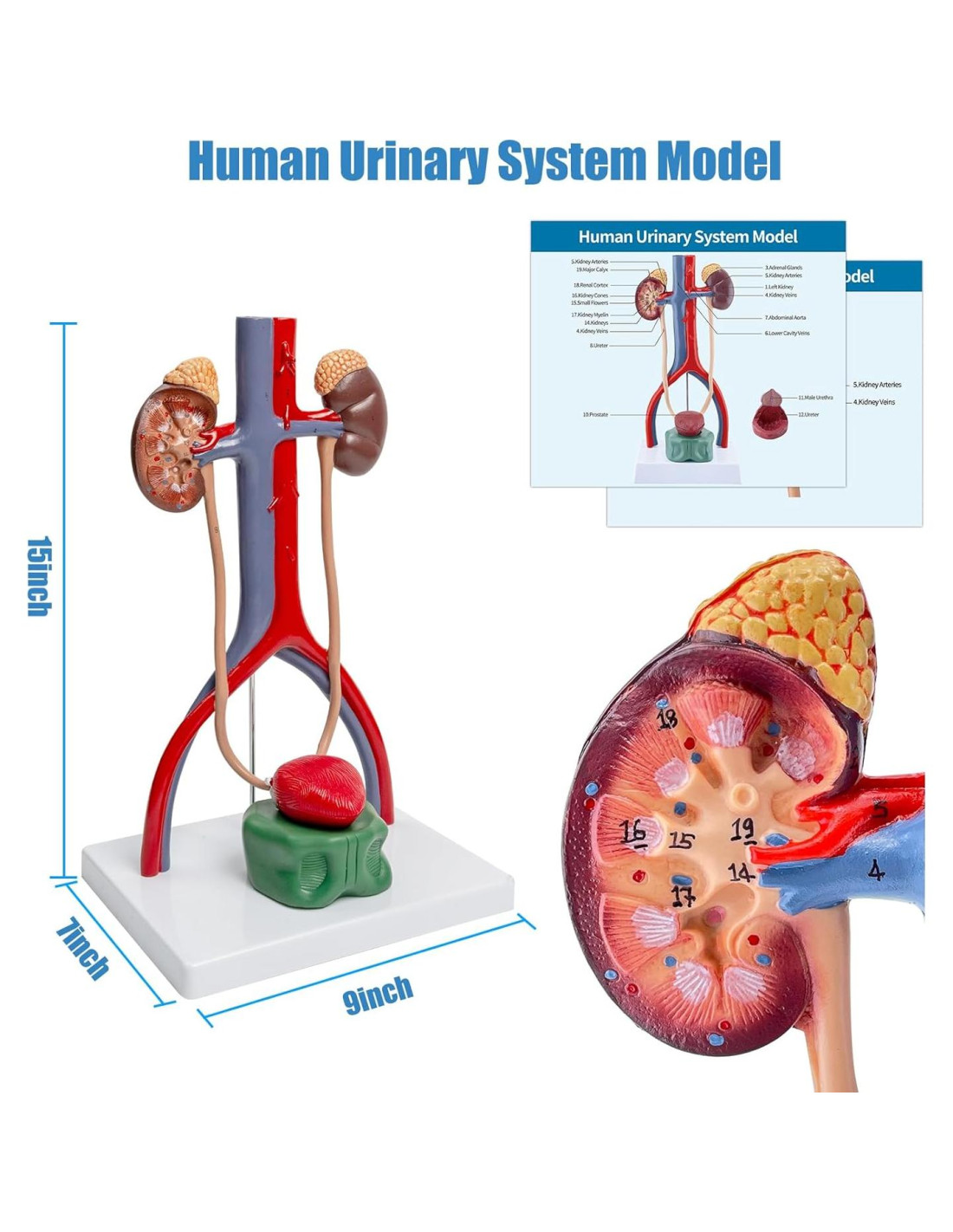- Manual del Producto Incluido - El modelo es detallado y hecho a mano. Las diferentes partes del modelo del Sistema Urinario están marcadas con diferentes colores. Viene con manuales de producto detallados, que son convenientes para una enseñanza y exhibición precisas.