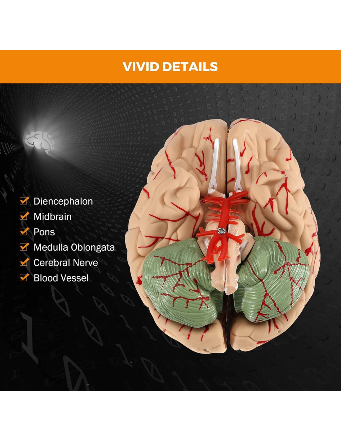 - DISPLAY CLARO - El Modelo de Cerebro Humano BEAMNOVA consta de 8 componentes, como una sección sagital del cerebro, hemisferio cerebral, cerebelo y tronco encefálico, y muestra el hemisferio cerebral, diencéfalo, cerebelo y tronco encefálico, mesencéfalo, puente, médula oblongata, nervio cerebral, etc. NOTA: Este cerebro anatómico no contiene un marcador digital ni una tarjeta de descripción. Si necesita un cerebro anatómico marcado digitalmente con un manual, busque B0882HXW13 para comprar.