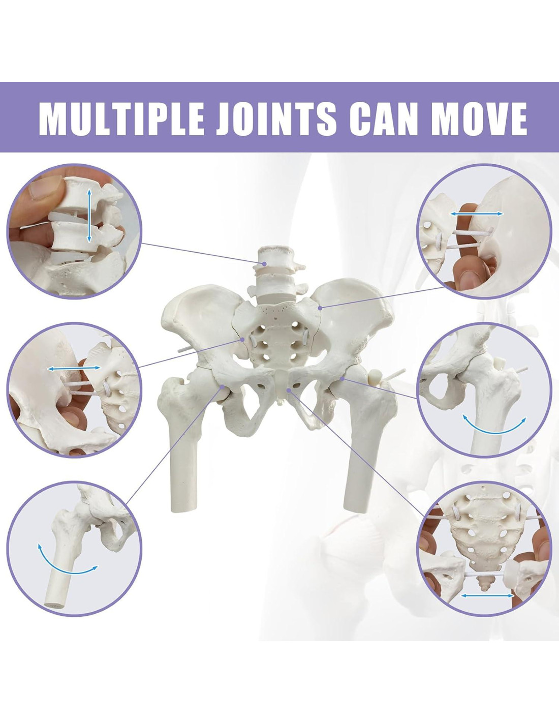 - Incluye Cabezas de Fémur y Articulaciones Móviles El modelo incluye cabezas de fémur y articulaciones móviles, permitiendo una exploración profunda de la región pélvica y su conexión con el fémur. Esto lo convierte en una excelente herramienta para demostrar y entender la mecánica y los movimientos de las articulaciones.