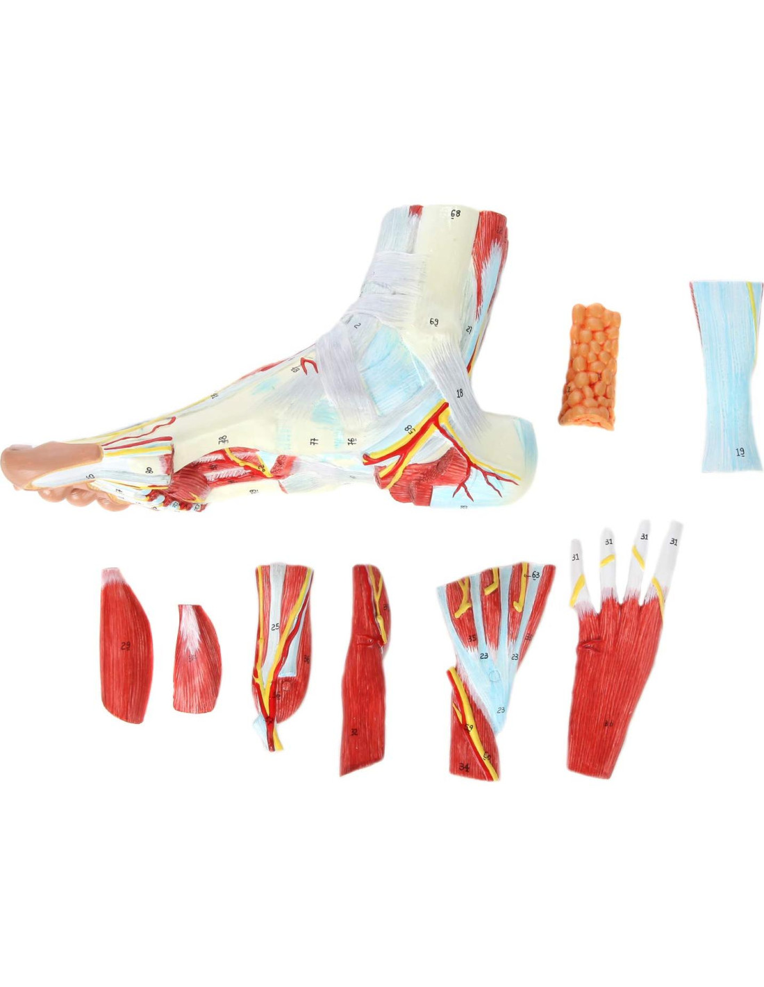- Modelo de Pie Humano: El modelo de 9 partes del pie humano de Axis Scientific incluye detalles de los músculos, ligamentos, nervios y arterias que se encuentran en el pie. Esta réplica del pie humano presenta una textura realista y describe perfectamente los puntos óseos del pie, y es ideal para educar a pacientes y estudiantes sobre la anatomía y las lesiones comunes del pie.