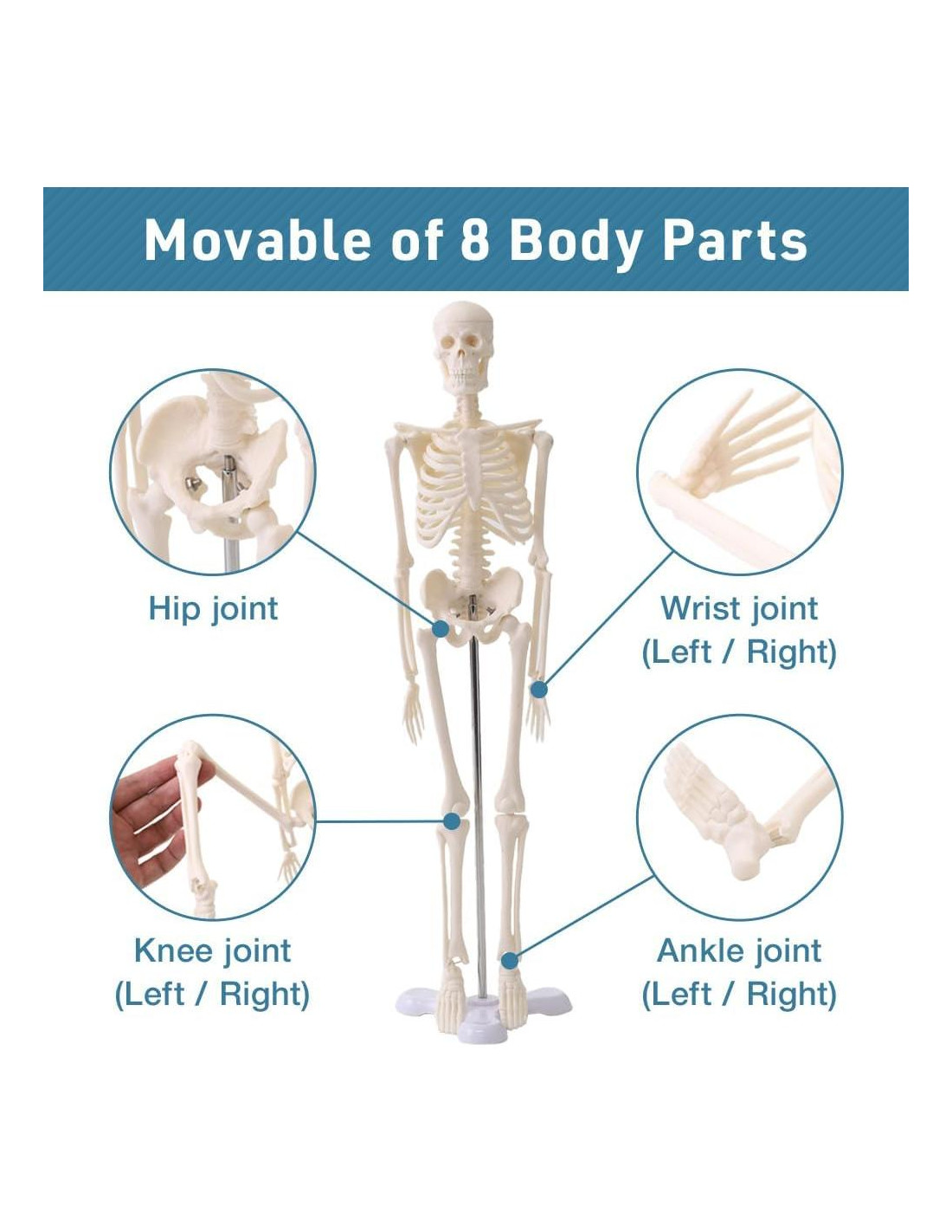 - Diseño Articulado: El modelo de esqueleto humano de 17.7" utiliza tecnología de articulación avanzada para simular el movimiento natural de las articulaciones, desde el hombro, codo, muñeca, rodilla hasta el tobillo, cada parte es flexible y libre; No solo es adecuado para estudiantes de medicina profesionales para un estudio profundo y comunicación médico-paciente, sino que también puede estimular el fuerte interés de los niños en la anatomía; El modelo reproduce altamente la estructura ósea humana, es la herramienta ideal para el aprendizaje de anatomía