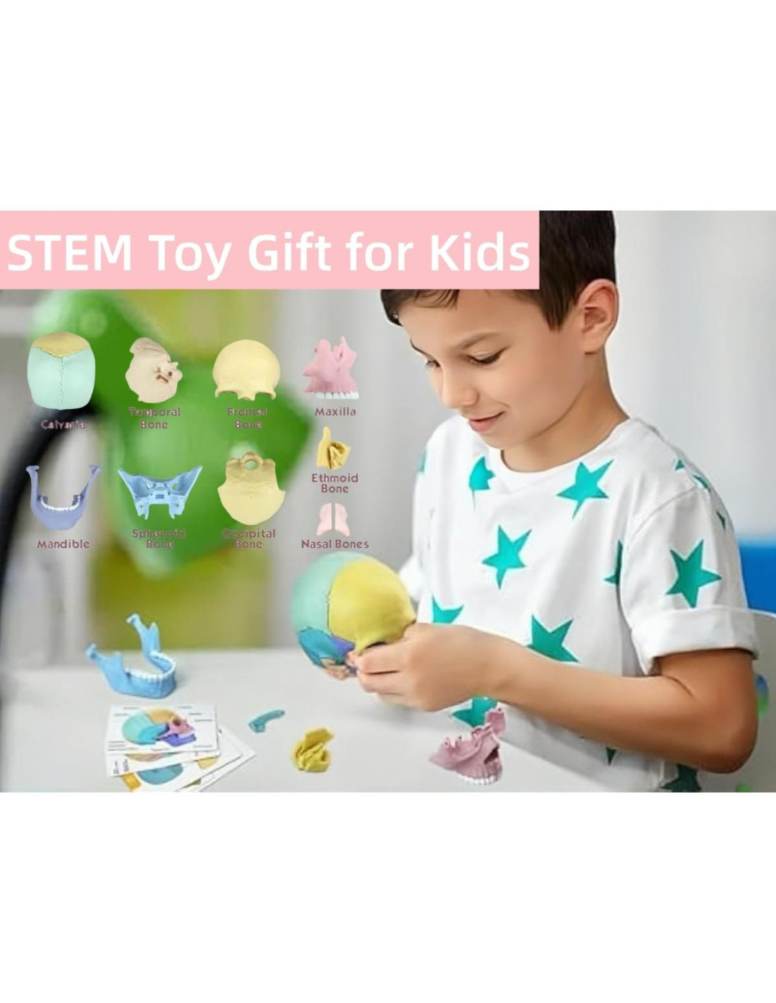 - Modelo de Cráneo Humano Desmontable de 17 Piezas con 10 tarjetas de anatomía y fisiología - Simplifica el aprendizaje de la anatomía a través de un ensamblaje codificado por colores, adecuado para educación STEM y estudio práctico.
