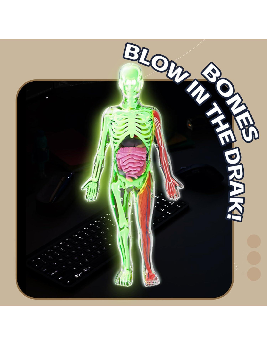 - Huesos que Brillan en la Oscuridad: Las piezas del esqueleto brillan en la oscuridad, añadiendo un elemento atractivo y divertido a la experiencia de aprendizaje.